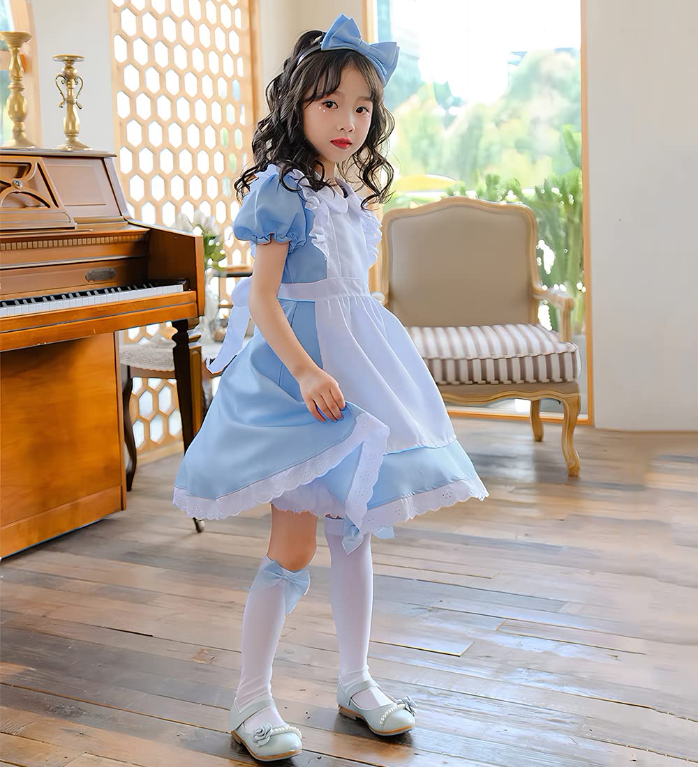 【人気】[RPFLQ] アリス 女の子 メイド服 プリンセス ドレス コスプレ ハロウィン 仮装 エプロン 半袖 子供 キッズ 女児 衣装 可愛い 萌え 人気 イベント 活動 なりきり ワンピース 水色 ブルー 3点セット | GIGATERA