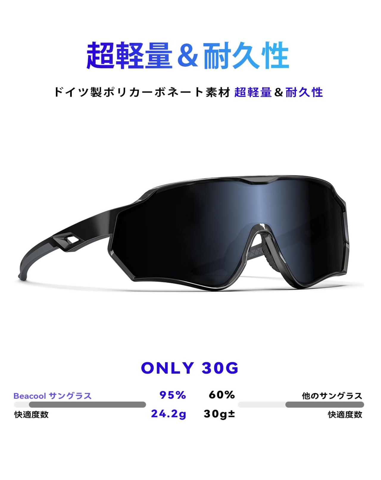 [BEACOOL] スポーツサングラス 超軽量 TR90 TAC 偏光レンズ 野球 自転車 釣り ランニング 登山 ゴルフ ドライブ バイク テニス スキー 大型フレーム設計 メンズ レディース UV400 紫外線防止 ユニセックス サングラス 安全 清晰