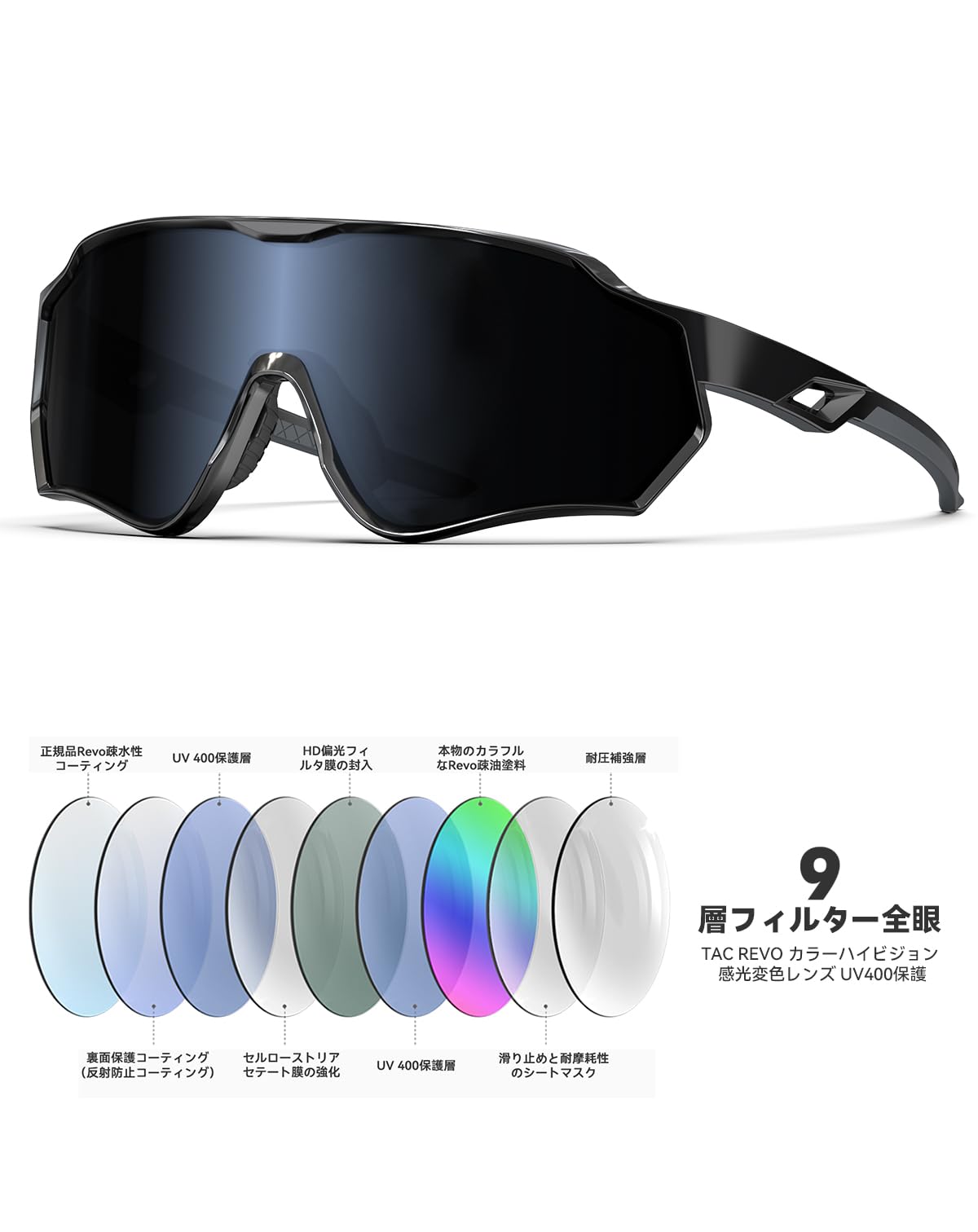 TAC材料: すべてのレンズは高品質破砕防止TAC材料で作られており、十分に耐久性があり、長期的に着用することができます。軽量なTR90フレームの設計は、ランニング、野球、運転、釣り、登山、オートバイや自転車、レース、スキー、トレッキング、アウトドアなどに最適で、剃りにくく、壊れにくい。色彩豊かなレンズはファッションとスポーツを組み合わせ、男性と女性が着用するのに適しており