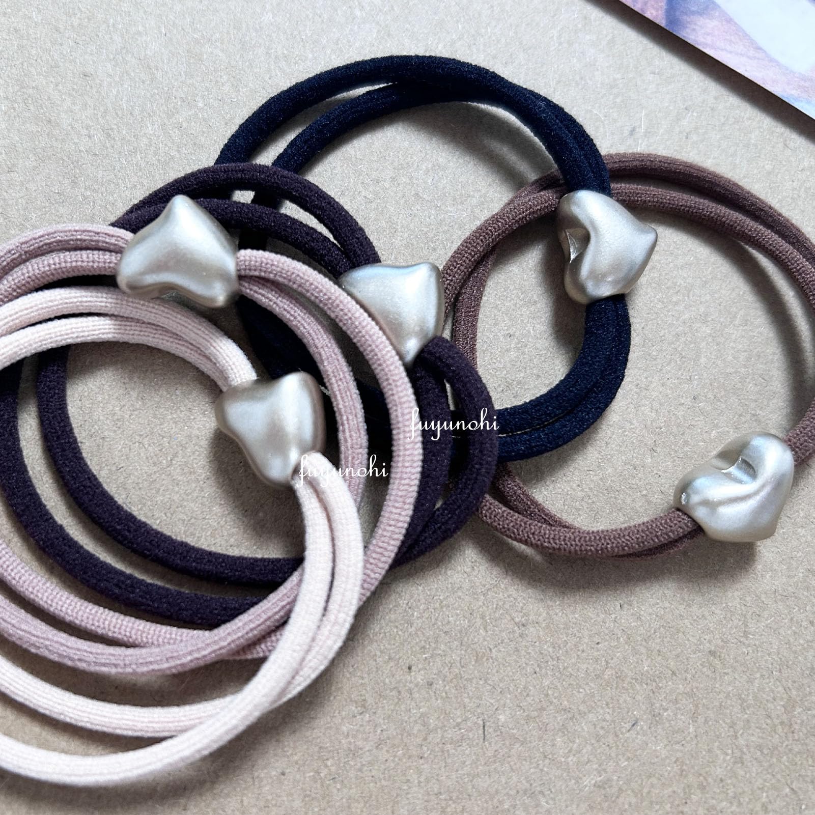 Fuyunohi ヘアゴム 黒 髪ゴム 跡がつかない ヘアゴム おしゃれ 跡がつかないヘアゴム ハート ヘアゴム かわいい 髪留め ゴム 韓国風 ヘアアクセサリー 飾りつきヘアゴム 高弾性 5本セット