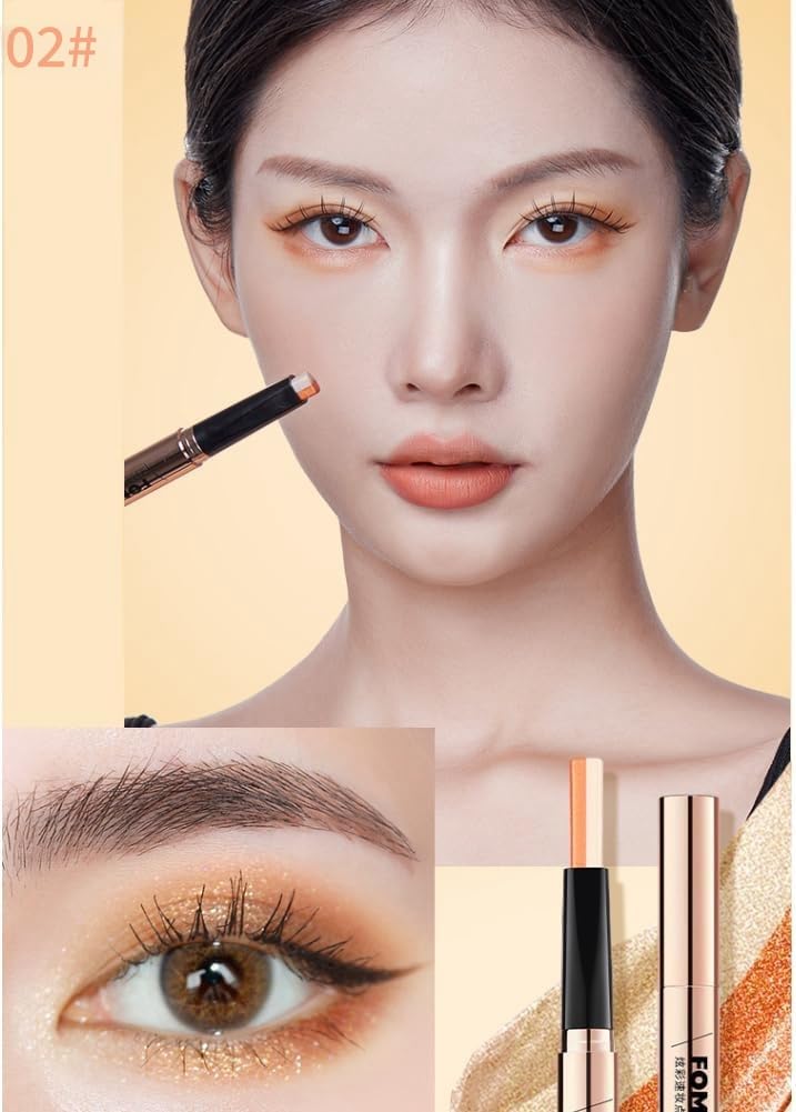 UNYOKE カラフルなクイックメイクダブルカラーアイシャドウペンアースカラー輪郭明るく真珠光沢のあるダブルエンドアイシャドウスティック-02#金柑糖