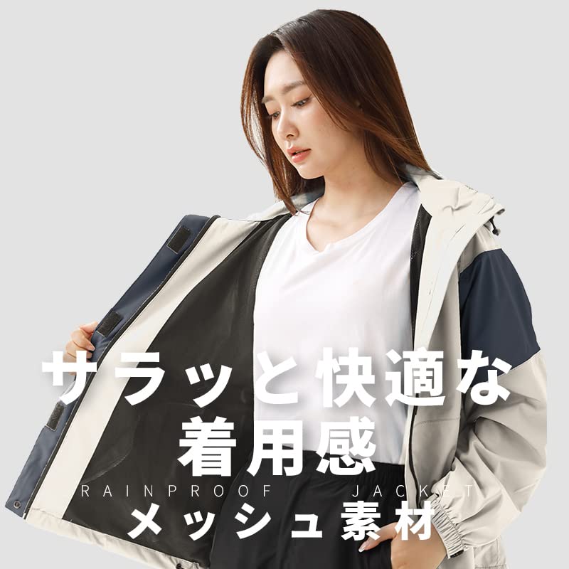 【フード、袖口調節可】裏地全体にメッシュ素材、肌が生地に直接触れない、長時間にも快適なさらっとした着心地を保ちます。フードは首元のドローコードでフィット感調整可能。マジック調節を二の腕に備え、防水性能をより理想的になります。