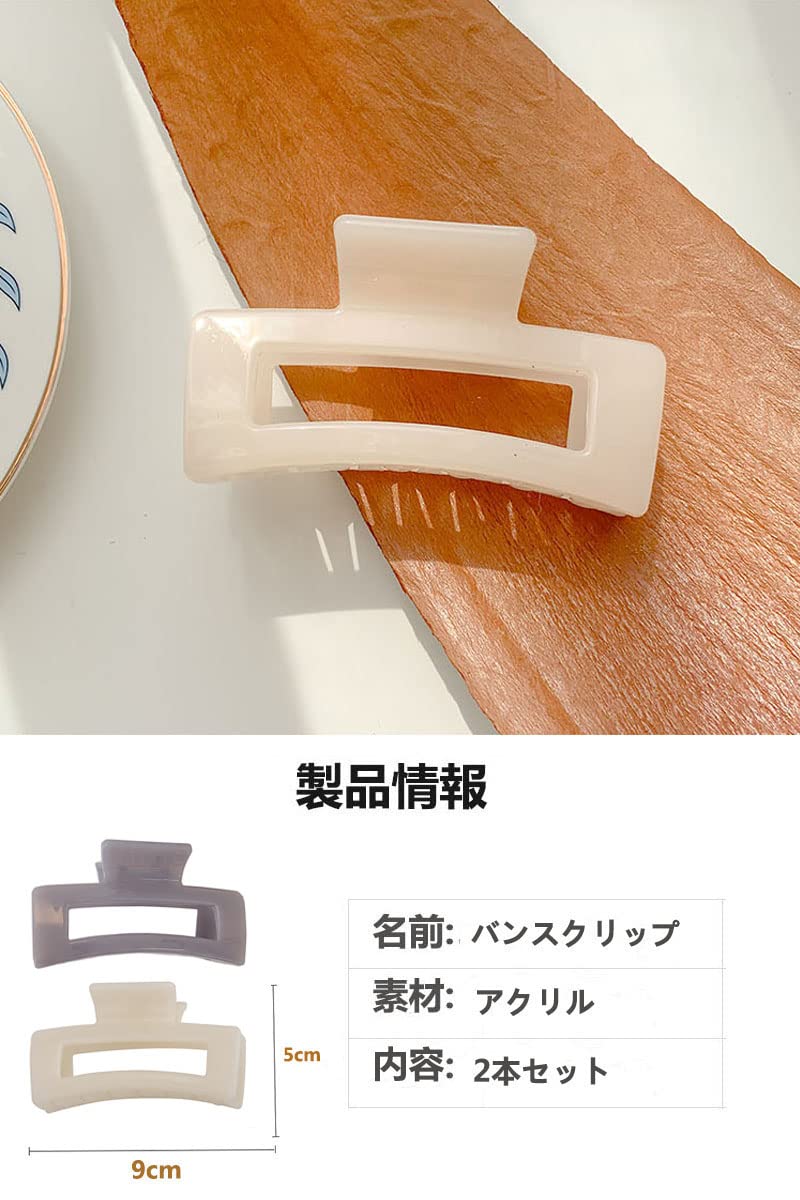 バンスクリップ 大 レディース フランスクリップ Yesmart 大きめ しっかり ヘアクリップ シンプル オフィス 主婦 無地 髪飾り 髪留め クリップ ベージュ グレー 光沢 2個セット Yes114