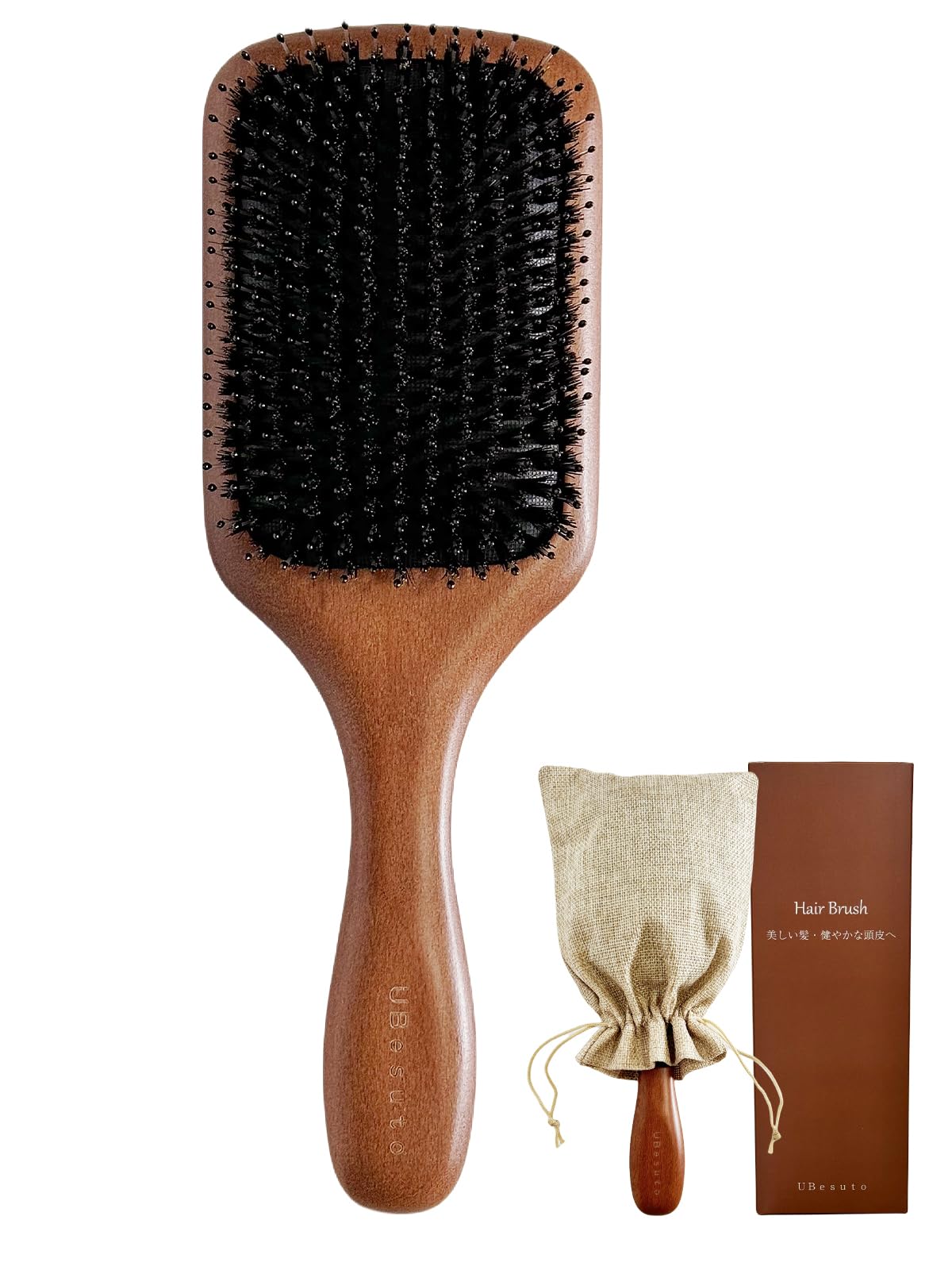 ??【うるツヤ 天然豚毛 ヘアブラシ】UBesutoヘアブラシは柔らかいナイロンピンと天然の豚毛を組み合わせた商品です。髪が薄くなってフツウのブラシでは地肌が痛いという方のための頭皮にやさしいブラシです。
