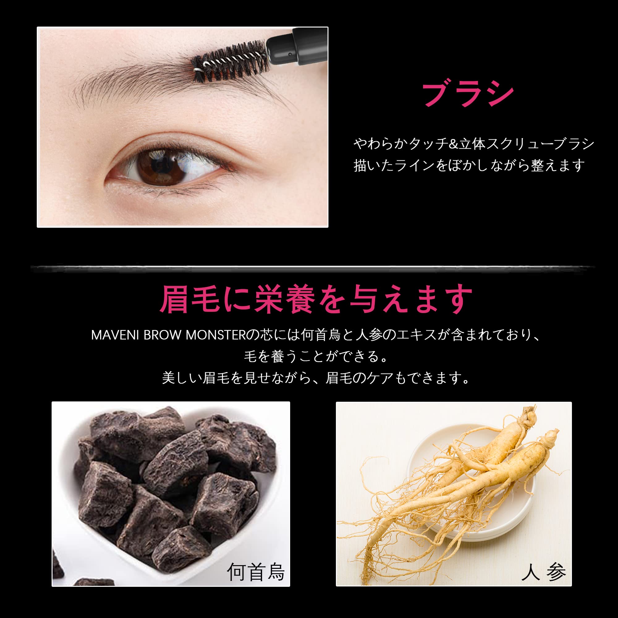 マベニ(Maveni) ブラウモンスター ペンシルアイブロウ アイブロウペンシル アイブロウ繰り出し アイブロウ パウダー&ペンシル&ブラシ3in1 無香料 替換用回転芯付き