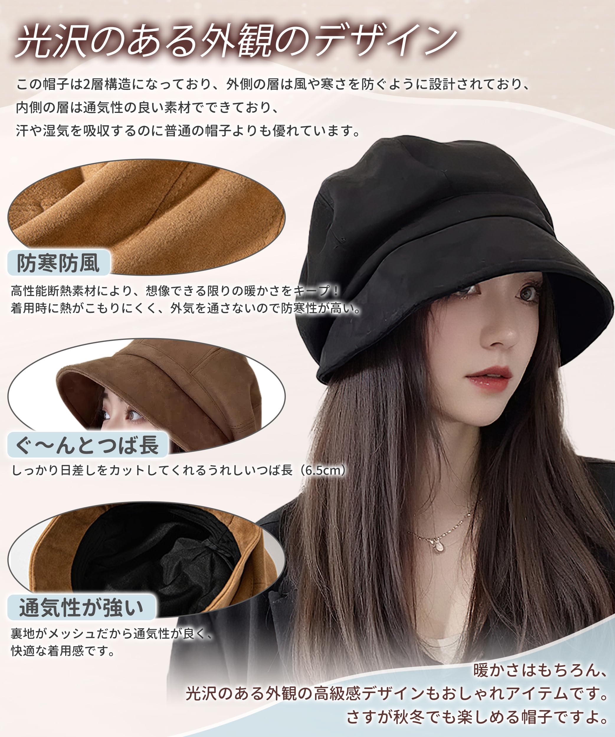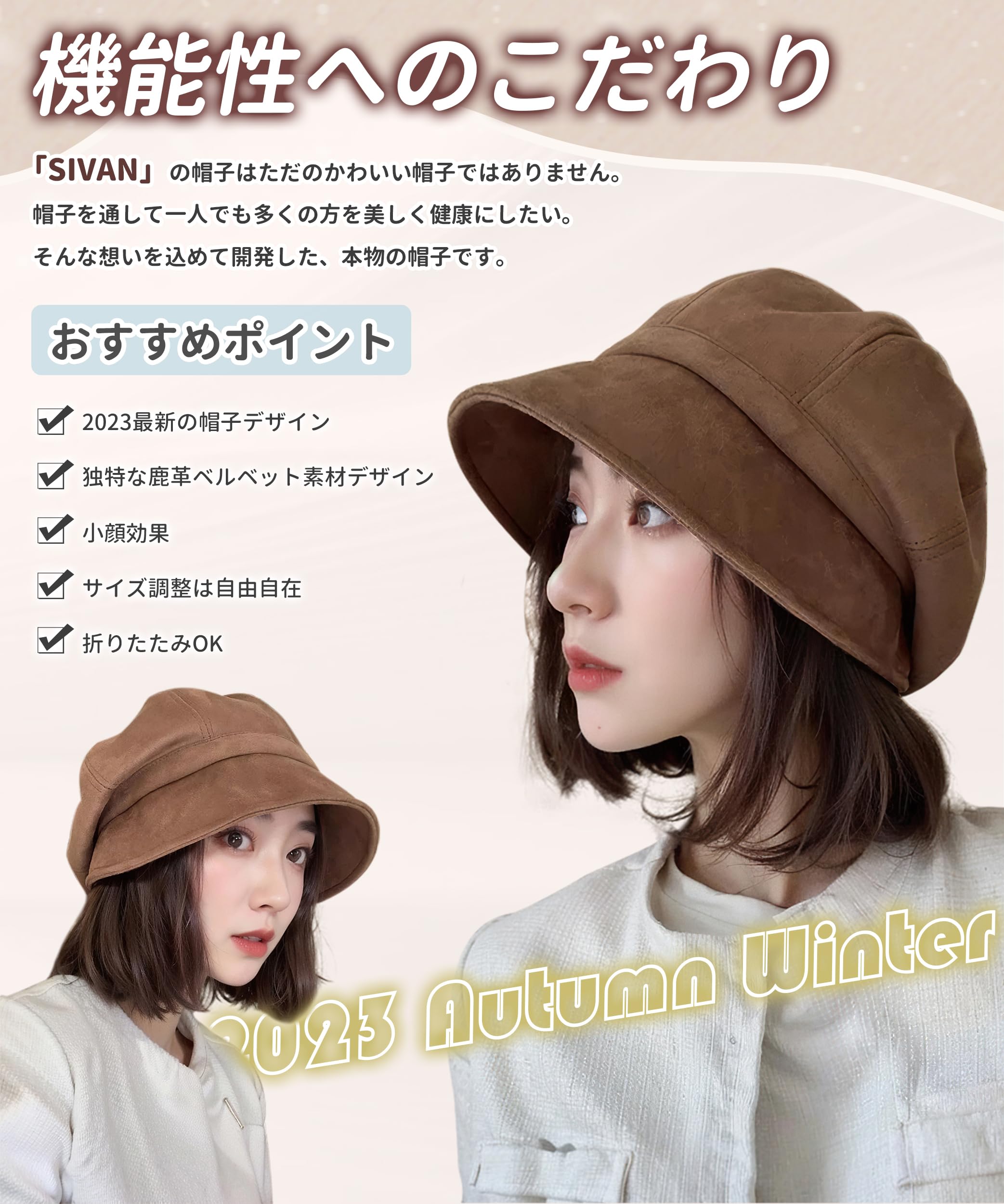 【数量限】[SIVAN] 帽子 レディース 秋冬 【圧倒的な小顔効果・高機能断熱な鹿革ベルベット素材・肌に優しい】 防寒防風 保温 柔らかい 吸汗排湿性 サイズ調整可能 折りたたみ 小顔効果 通気 ふんわり キャップ 無地 秋 冬 | GIGATERA
