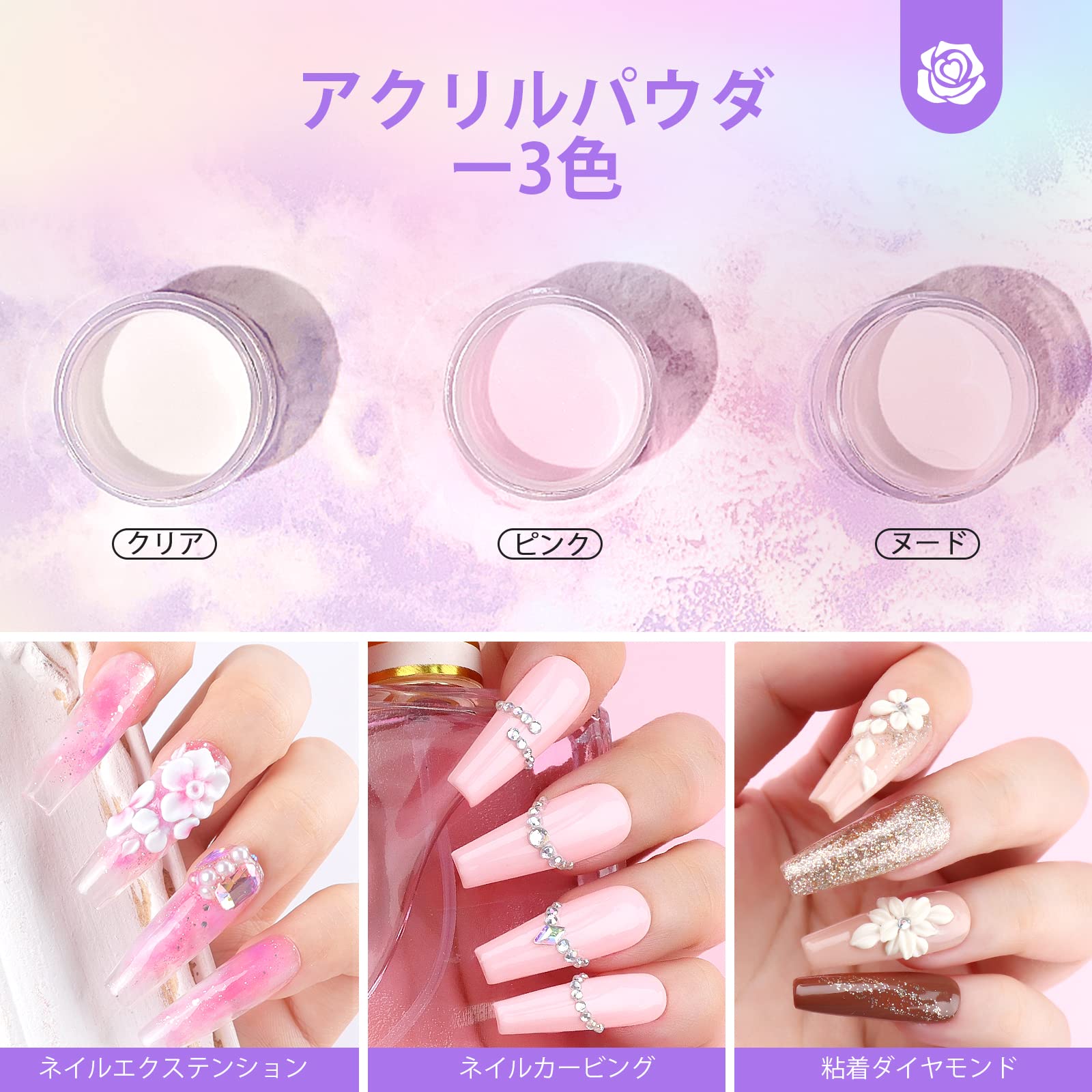 【数量限】Saviland 3 色アクリル ネイル キット-アクリル パウダーと リキッドのセットブラシ付き アプリケーション用のキューティクル オイル プロ仕様のセットDIY ネイル用のすべて | GIGATERA