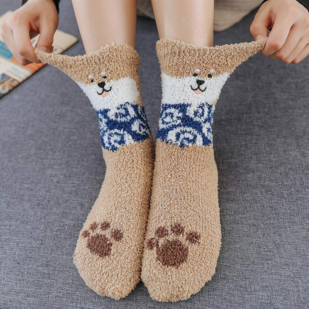 【5足女の子可愛い動物柄デザイン】かわいい猫の爪先や犬柄の暖かいソックスは女性足首の周りをキュットに見えます、履いても可愛いコーディネートできます。着たら毎日元気になって感じられます。また、5足セットが含んで様々な色の猫爪と犬爪が楽しんでください。キュートでファションで暖かサンゴ冬用ルームソックスはクリスマスス・新年・バレンタイン素晴らしい贈り物であり、女性や女の子にぴったり冬の靴下でもあります。