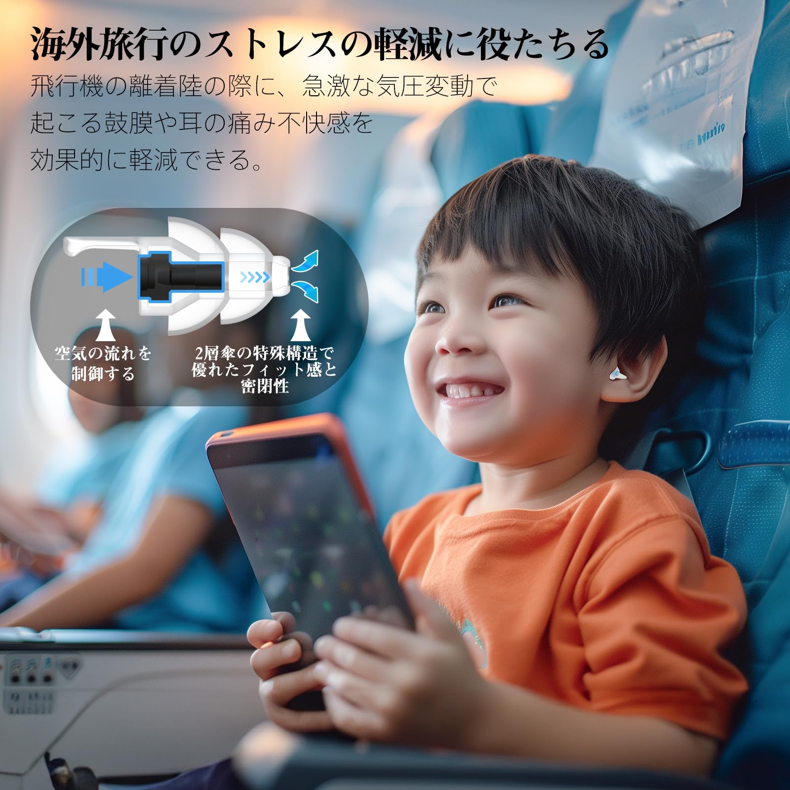 【子供用飛行機耳栓&使用簡単】この耳栓は多くの子供の耳形を分析したデータをもとに設計し、子供の小さめの外耳道にあわせて開発され、人間工学に基づいた設計、2重傘の特殊構造で耳穴に吸い付くようなフィット感があり、自然にフィットして違和感が少ないです。中空設計で、優れた通気性があり、耳に水が入ったような閉塞感もありません。細長のハンドルがあり、着脱も簡単で、装着は耳栓の先端のハンドルを握って、ゆっくりと外耳道の内に挿入してから、耳の内部の形に沿ってぴったりとフィットします(耳が快適である限り)。不要なときは細長いのハンドルを握って、ゆっくり取り外 します。