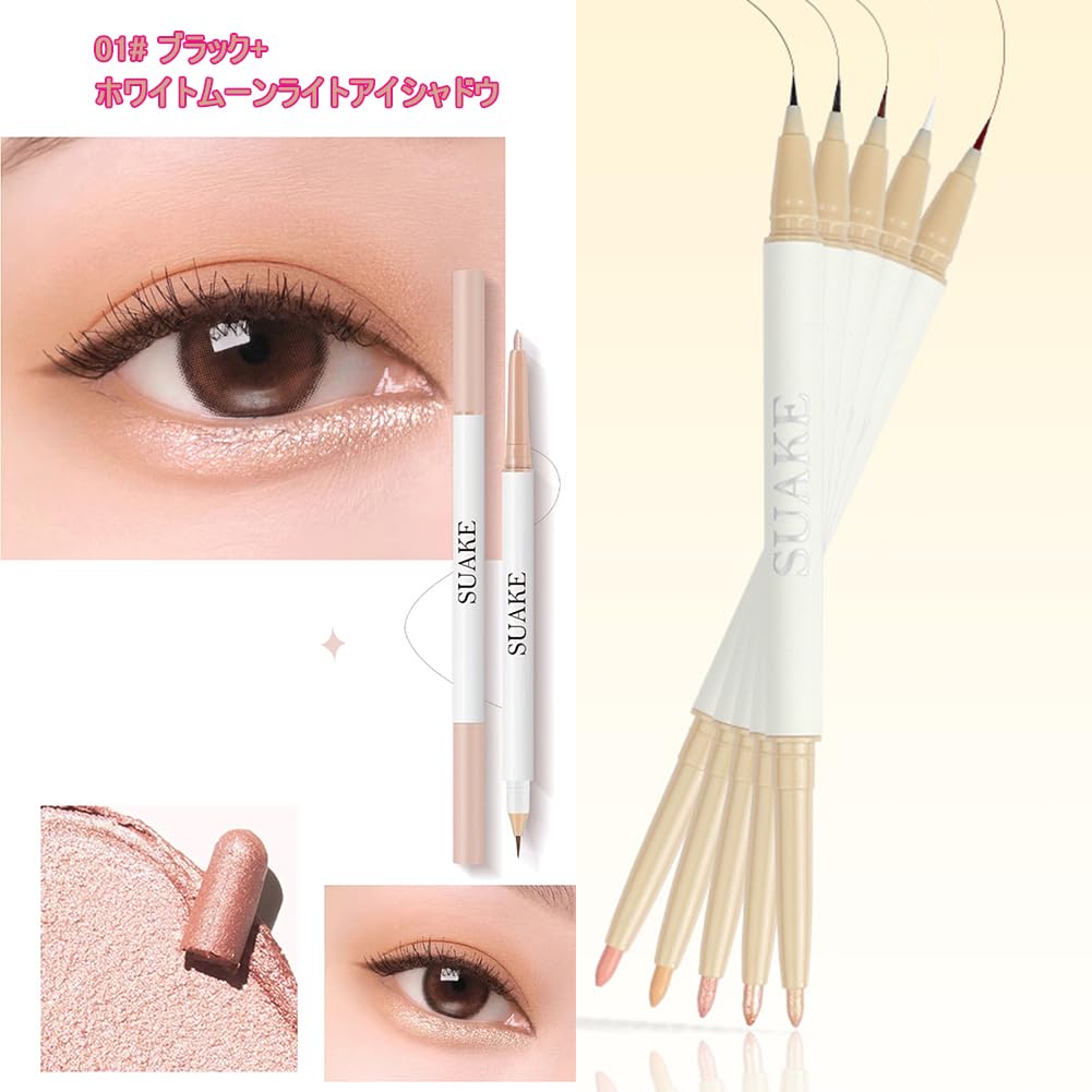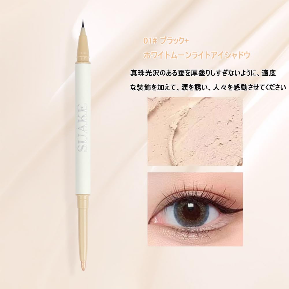 デュアルコアアイライナー ウォータープルーフ ペンシルアイライナー 【涙袋ペンとアイライナーの2in1】ポップコスメ 高密度ダブルライン エキスパート シャドーグレー 両面集中塗り リキッドアイライナー、双頭、両用、多機能、二重効果の三次元(01# ブラック+ホワイトムーンライトアイシャドウ)