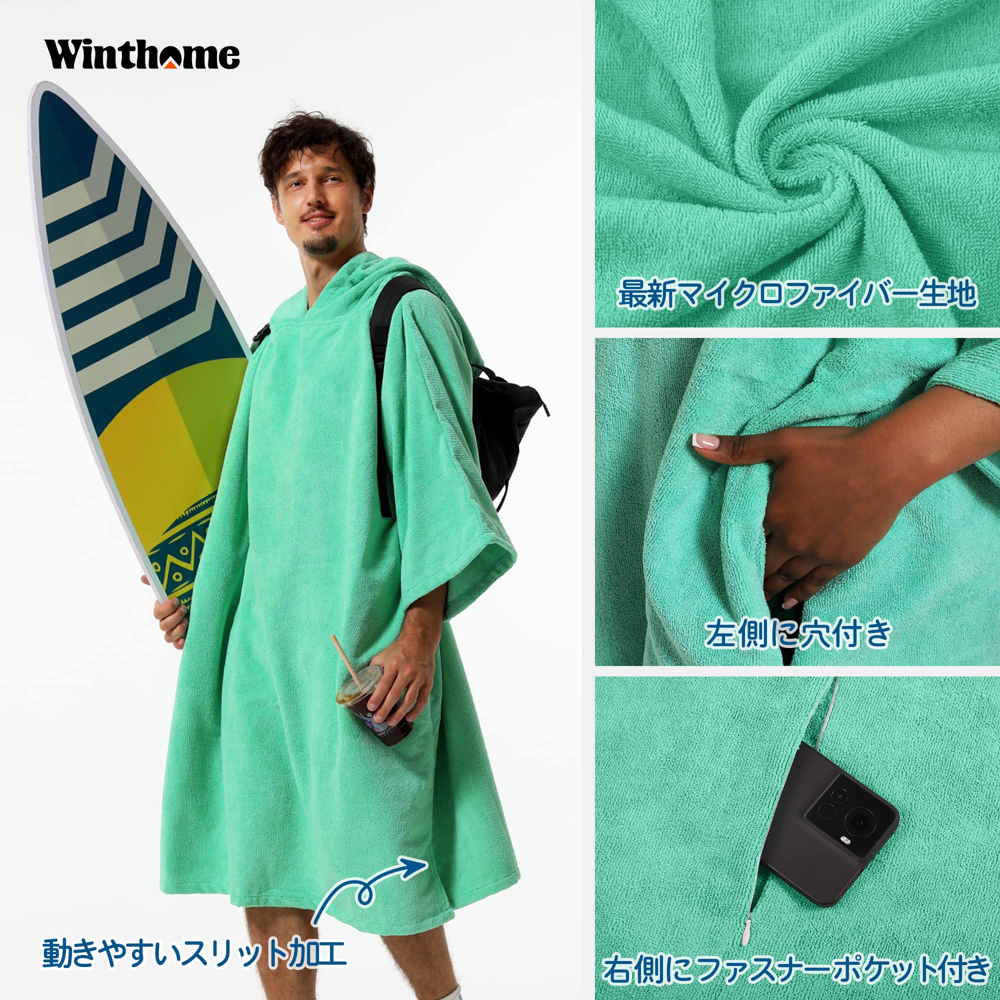 Winthomeお着替えポンチョ タオル サーフィンポンチョ 着替えタオル サウナポンチョ サーフポンチョ 速乾吸水 長袖 防寒 全6色