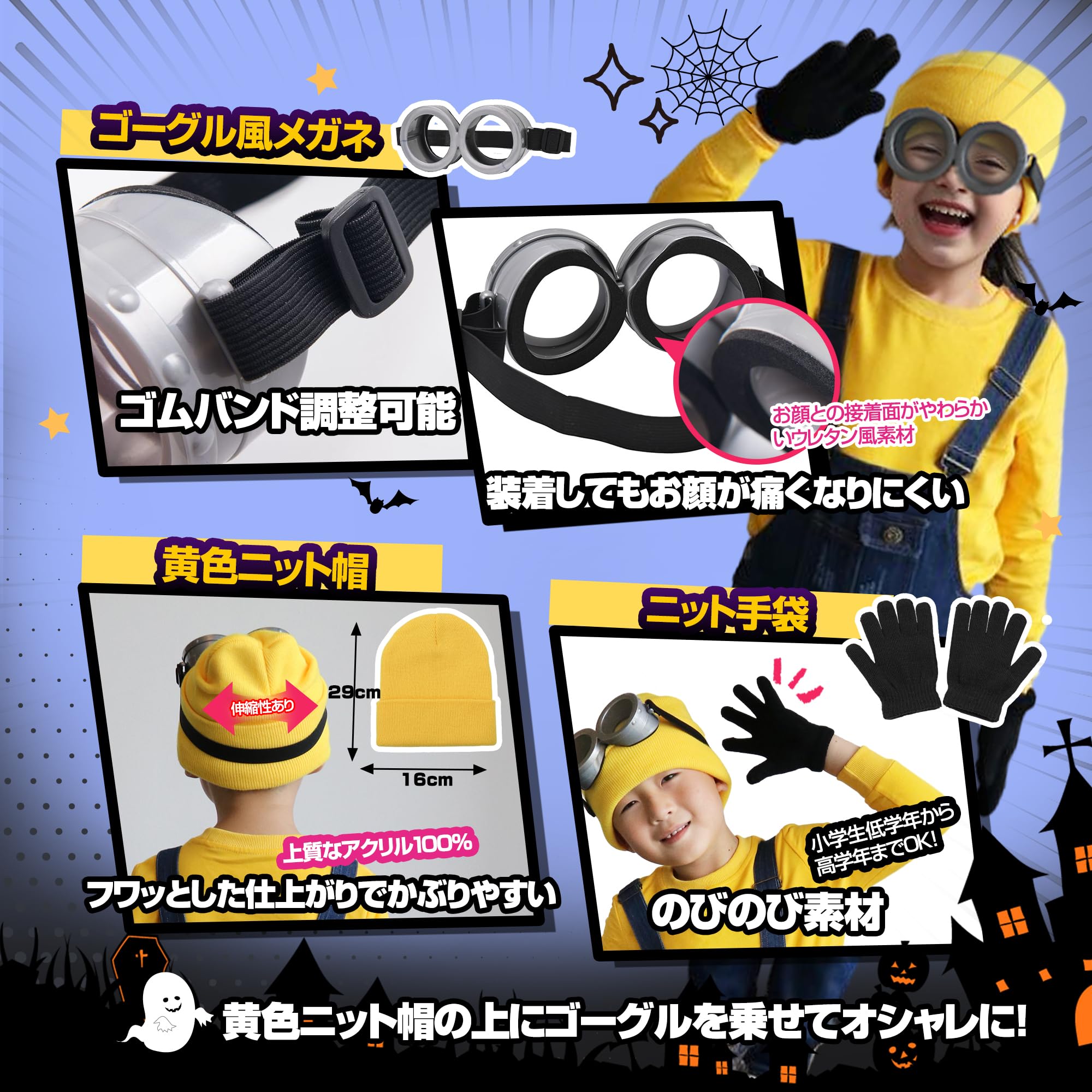 【特価在庫】[GOKEI] ハロウィン コスプレ 子供 5点セット ミニオン 仮装 キッズ コスチューム ミニオンズ 子供服 【黄色いトレーナー オーバーオール ニット帽 ゴーグル 手袋】 ミニオン用 衣装 子ども 男の子 女の子 クリスマス パーティー イベント | GIGATERA