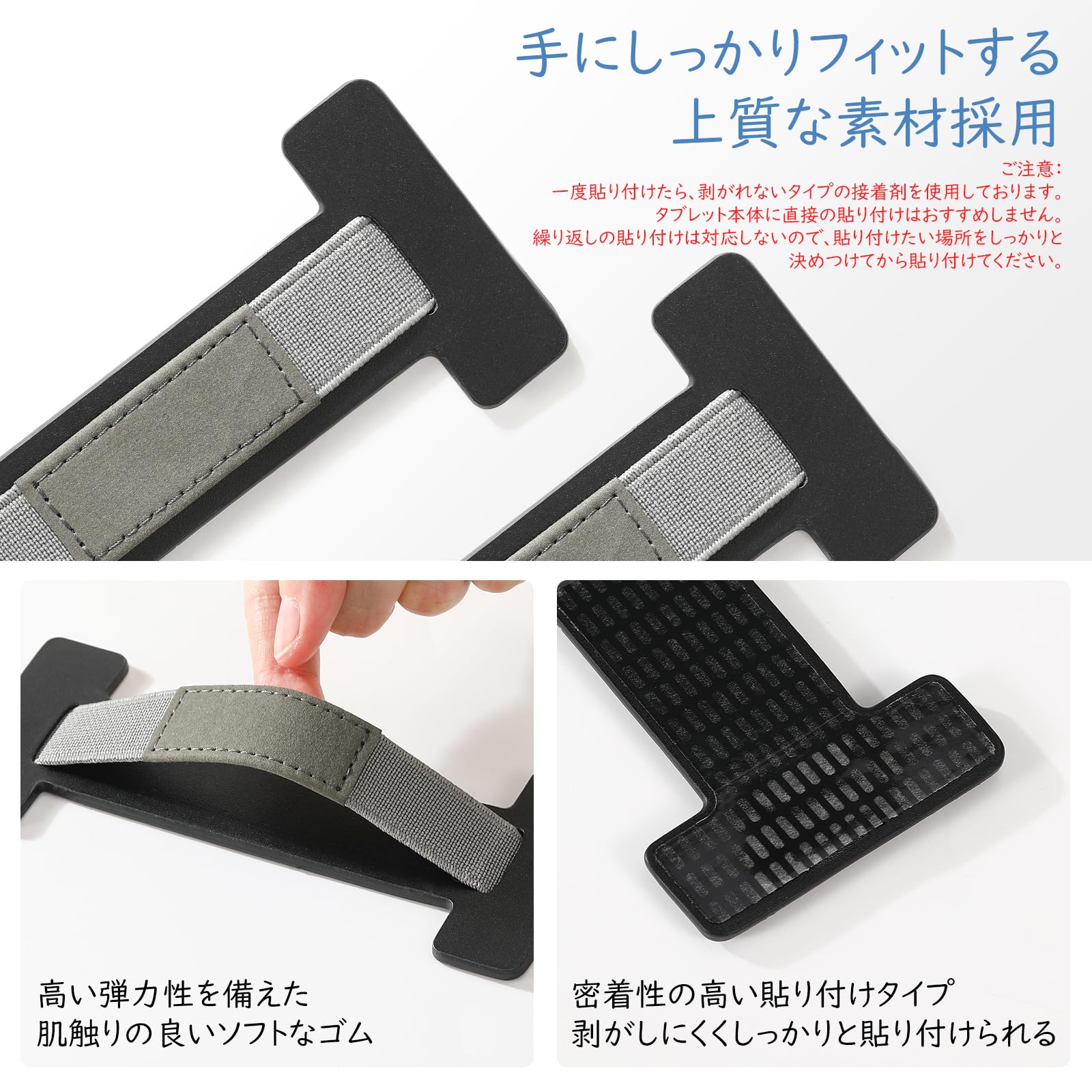 タブレットハンドストラップ MoKo 粘着式 剥がせない強力粘着 タブレットゴムバンド 片手持ち 安全ハンドストラップ タブレットリング 6~11インチタブレット対応 iPad 11/10世代/iPad Air/Pro 11(M3/M2)/iPad Mini7/6/5/4/kindlePaperwhite24&21/FireHD 8/FireHD 10などに適用 Black