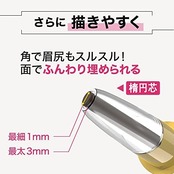 「新たにブラシ付き、1本で美人眉に」1-3mmの細芯で眉尻まで描きやすい、ブラシ付き眉を整えたり、ぼかすのにピッタリなブラシ付き。柔らかい毛質を採用したブラシ、 ナチュラルふんわり眉に仕上がります。