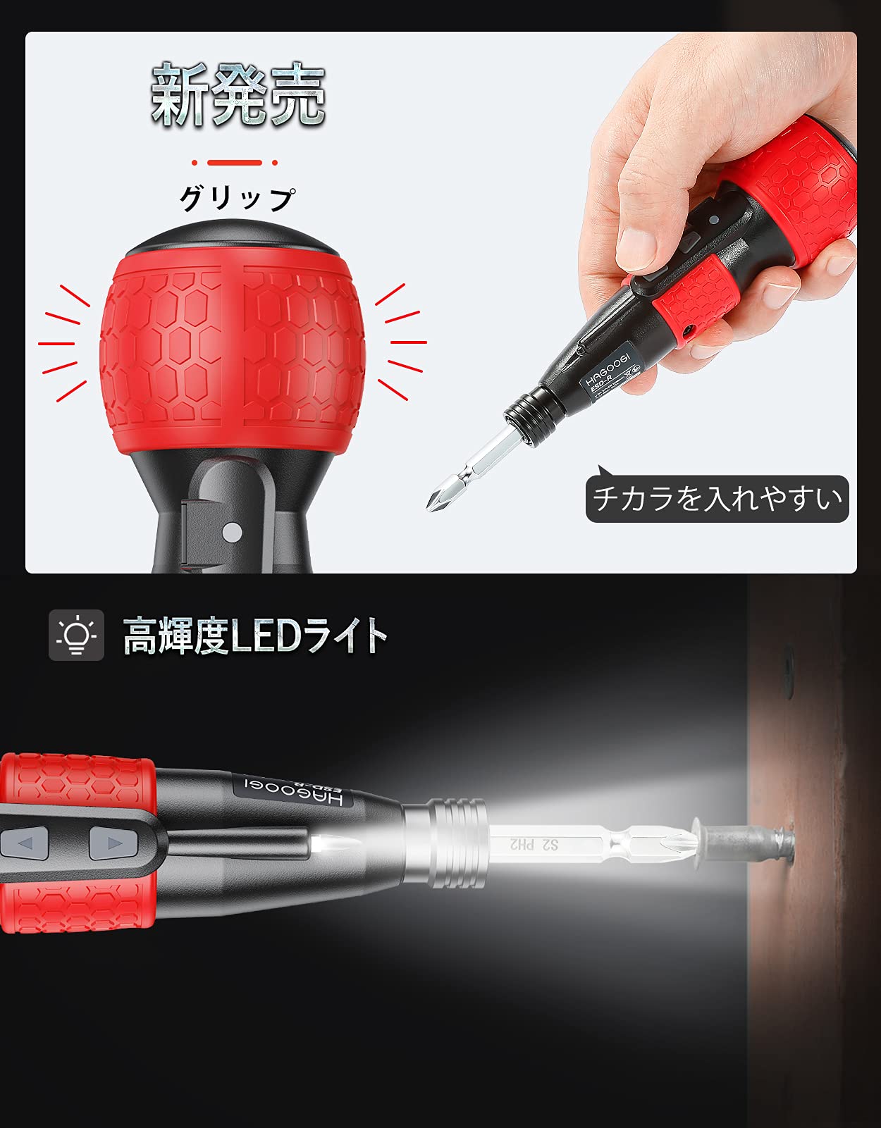 HAGOOGI (ハゴオギ) 電動ドライバー USB充電式 電動 4N.m 手動 10N.m 小型 連続使用時間80分 軽量 初心者 対応 (red)