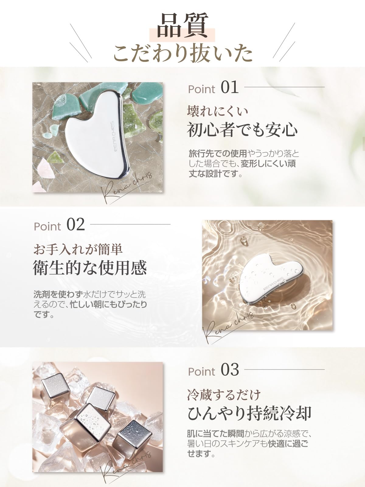 ?【ギフトにも最適】ご注文にはかっさプレート、使用説明書、クリーニングクロスが含まれ、すべてが美しいボックスに入っています。可愛らしいパッケージと優れた工芸品は、あなたの特別な人への理想的なプレゼントになります。?【安心の】Rena Chrisからお買い上げいただいた製品に対しては、1年間のが付きますので、製品に何らかのご不備などがありましたら、ご遠慮なくお問い合わせください。通常24時間以内対応させていただきますのでどうぞご安心ください。