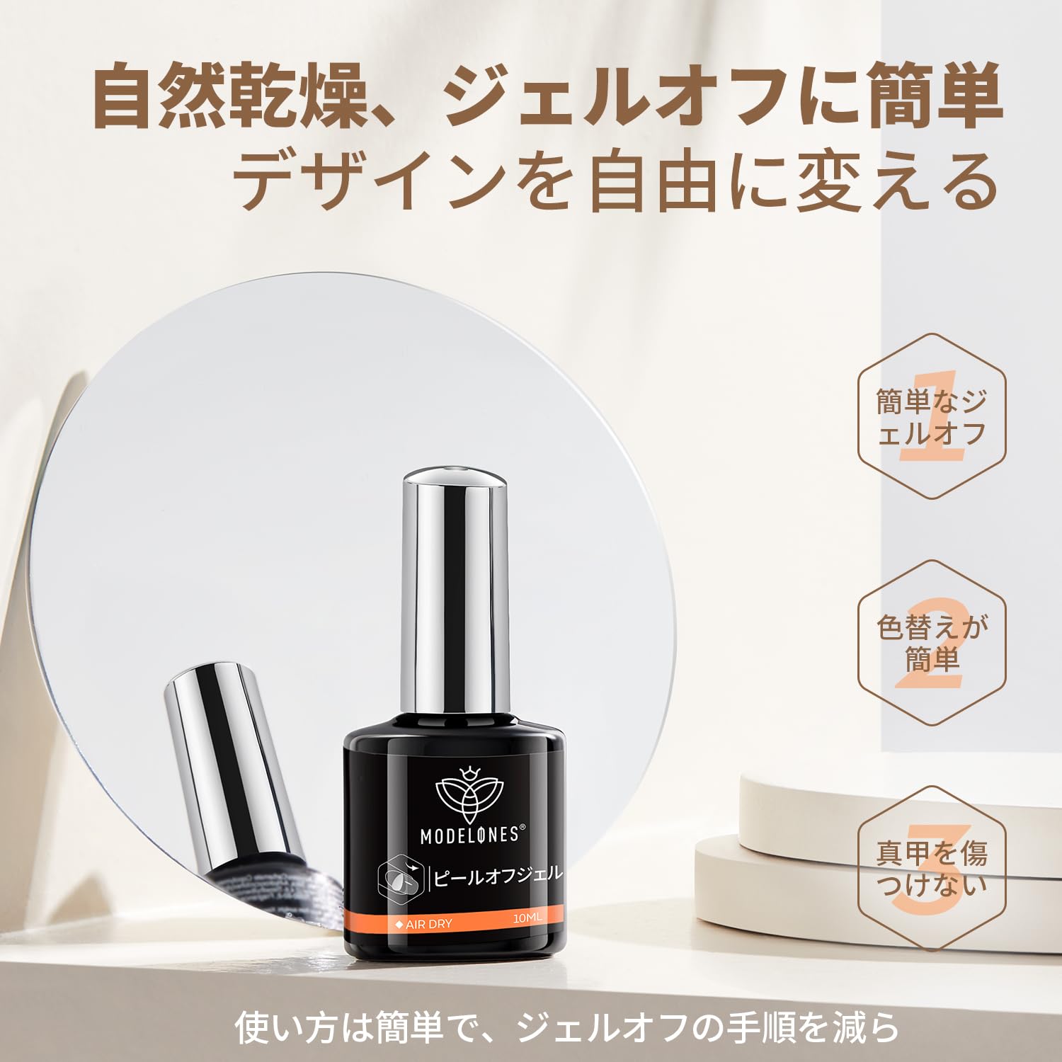 Modelones ジェルネイル ピールオフジェル はがせる ベースコート 10ML【アセトン リムーバー不要でぺりぺりはがせる】ライト硬化不要 自然乾燥 カラージェル