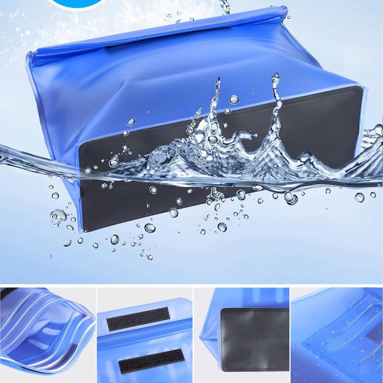 防水ポーチ素材:PVC、防水ファスナー、PPウエストベルト、ABS 。サイズ: 20x10x16cm , ベルト:85*2.5cm カラー: ブルー/クリア/ブラック 。 内容:防水ポーチ1個+防水ケース1個