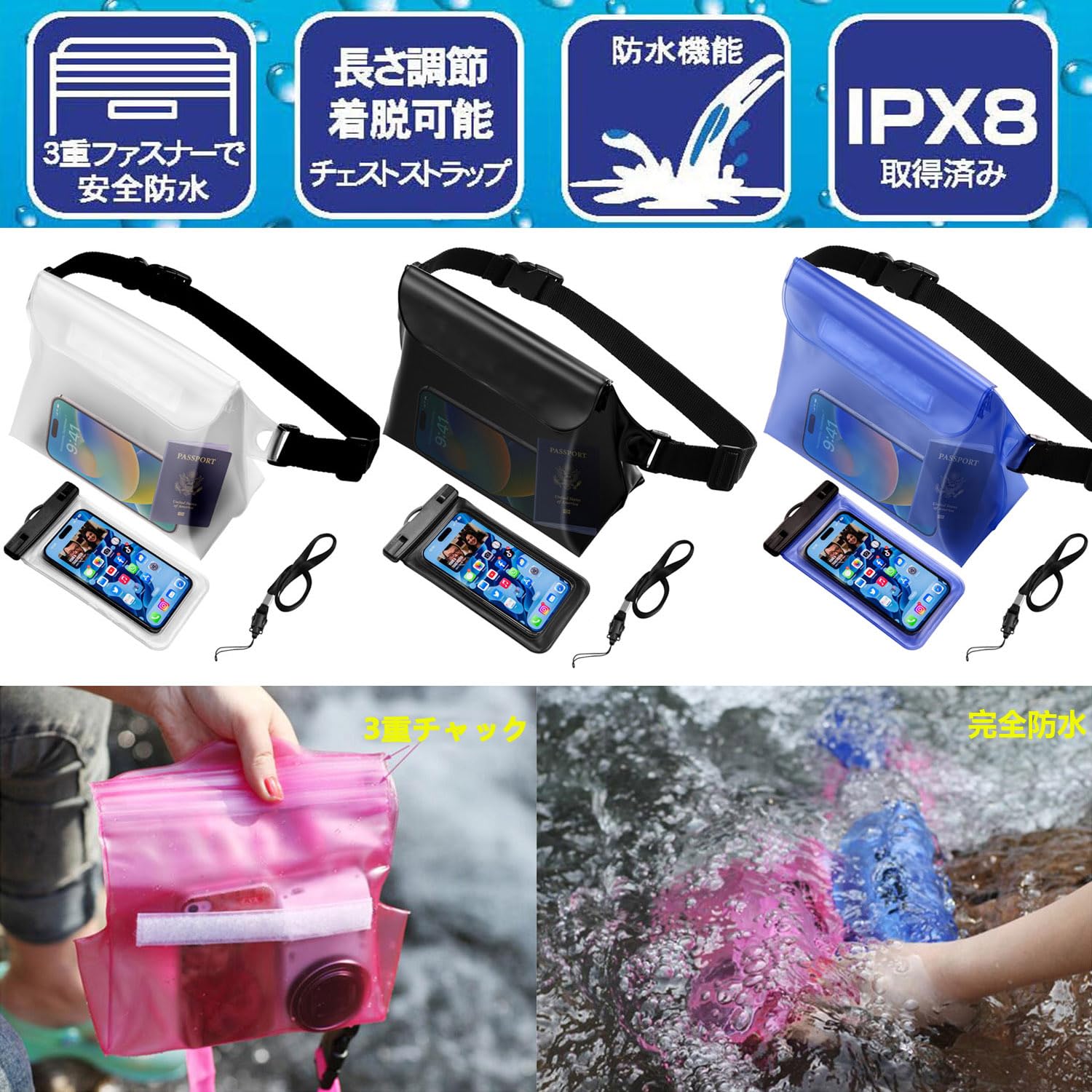 【新着】DanYee 防水ポーチ 完全防水 防水ケース 【2個セット】 IPX8取得済み 3重チャック PVC素材 海水浴 プール 釣り バイク ウエストバッグ 防水パック 携帯 | GIGATERA