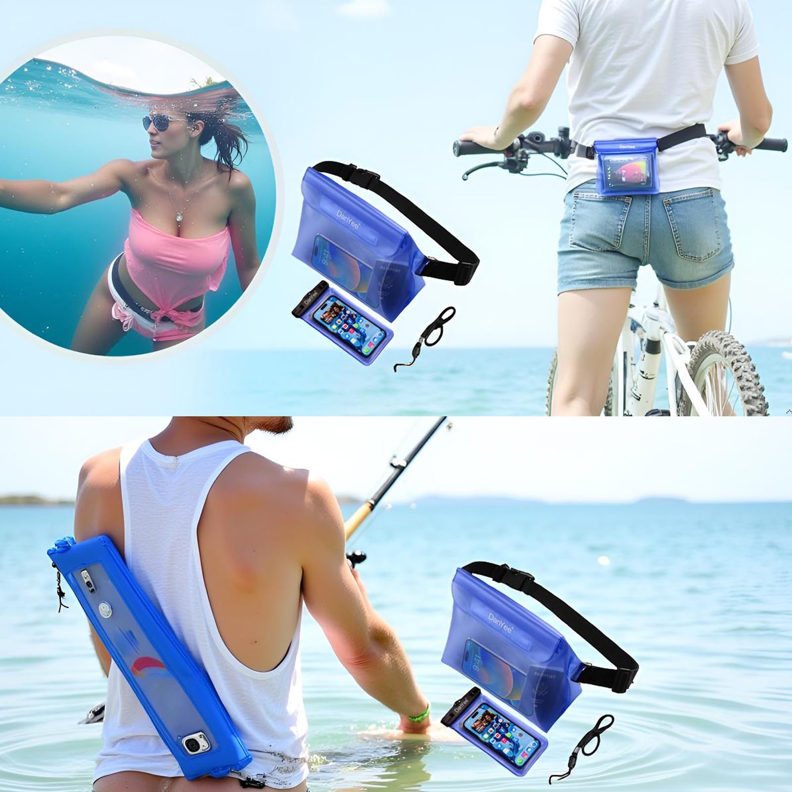 DanYee 防水ポーチ 完全防水 防水ケース 【2個セット】 IPX8取得済み 3重チャック PVC素材 海水浴 プール 釣り バイク ウエストバッグ 防水パック 携帯