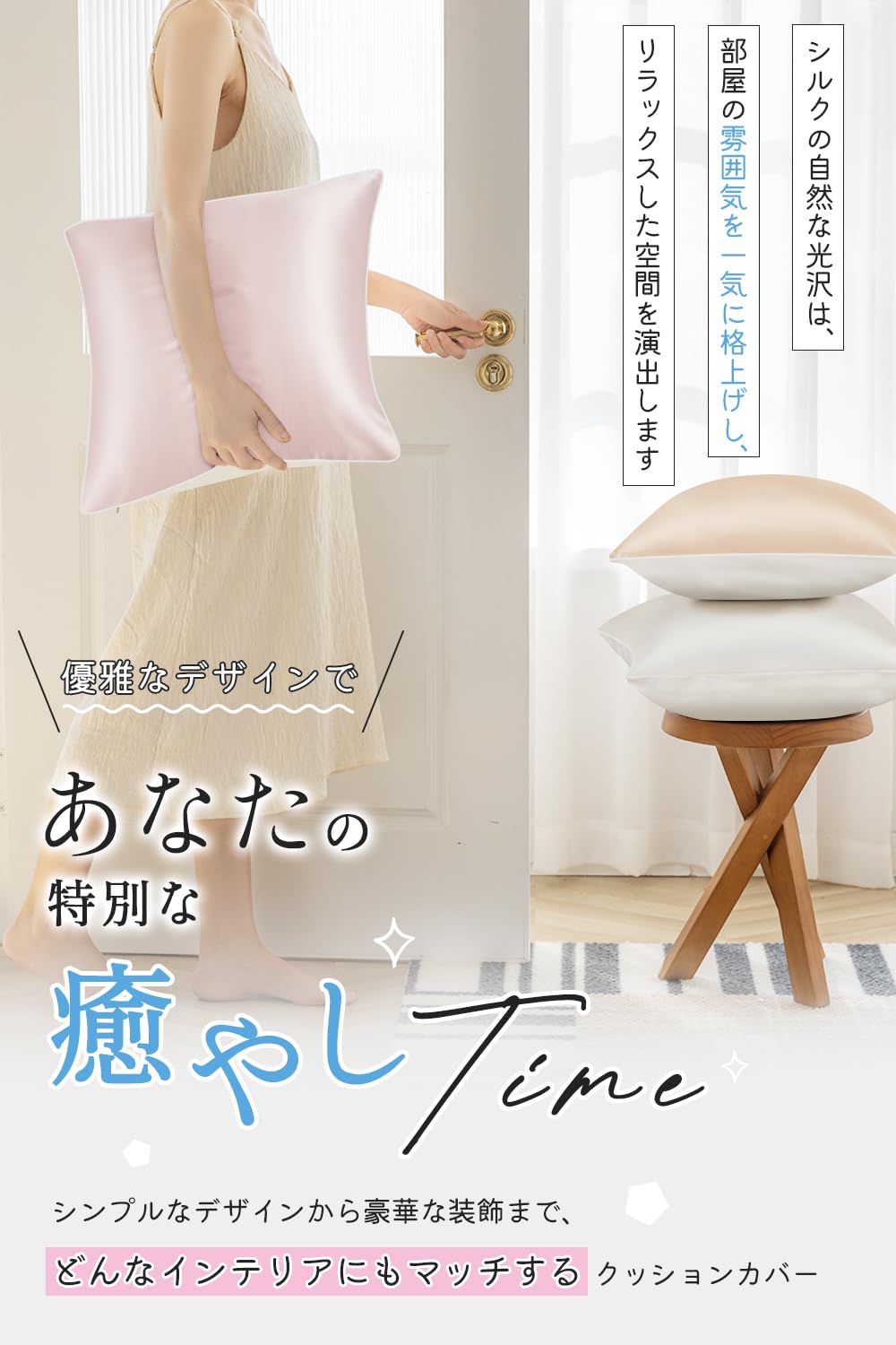 ??【様々なシーンで活躍:あらゆる空間に調和】 シルククッションカバーは、リビングやベッドルームはもちろん、ダイニング、書斎、さらにはオフィスや商業施設など、幅広い場所で活用できます。例えば、和室にシルククッションを置くことで、伝統と現代が融合した独特の雰囲気を演出できます。また、モダンなリビングにシルククッションを配置すれば、洗練された高級感が生まれます。このように、シルククッションカバーは多様性に富み、あらゆる空間に調和しながら、その場所の魅力を最大限に引き出す力を持っています。