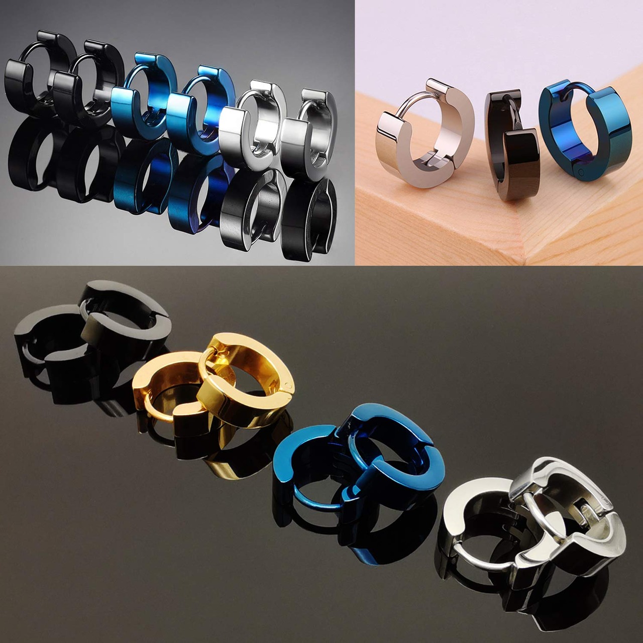 【フープピアス メンズ セット内容】 ★大人気のデザインを取り揃えた使い回し抜群のお得な5種ペア合計10 個フープピアスです! ★ピアス:内径9mm 幅4mm ★リングピアス:内径12mm、幅2.5mm ?両耳に付けられます! ?携帯に便利な収納ポーチ付き! ?シンプルなデザインなので、カジュアルでもフォーマルでも飽きがこなく長くお使いいただけます。