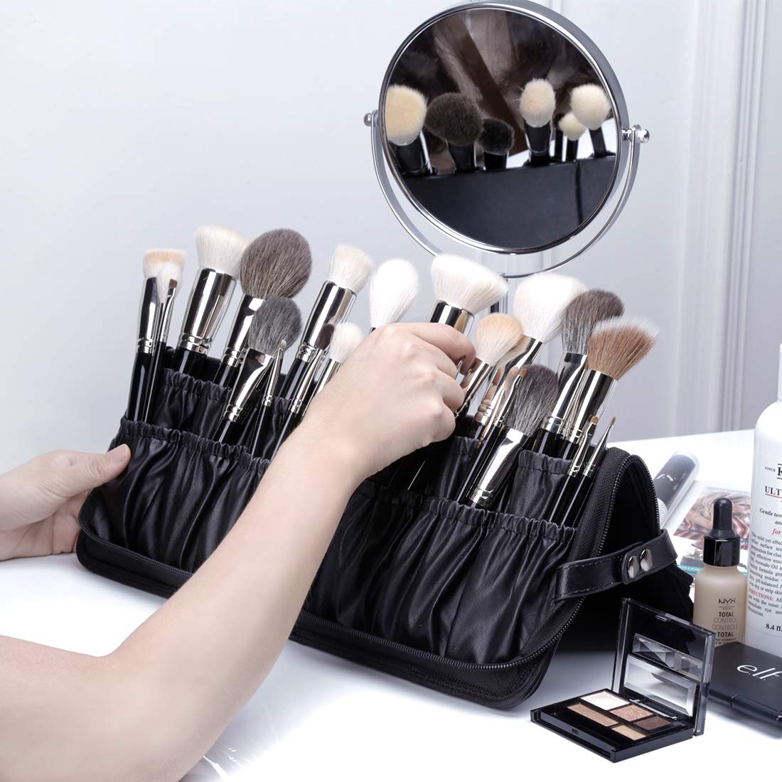 【プロ用なブラシポーチ】お洒落と驚いた収納力、この高級感が溢れる化粧ポーチは自分用にも、友人にプレゼントとしても最高なグッズです。メーキャップアーティストはこのケースを持ったら、もっとプロフェッショナルに見えますよ。