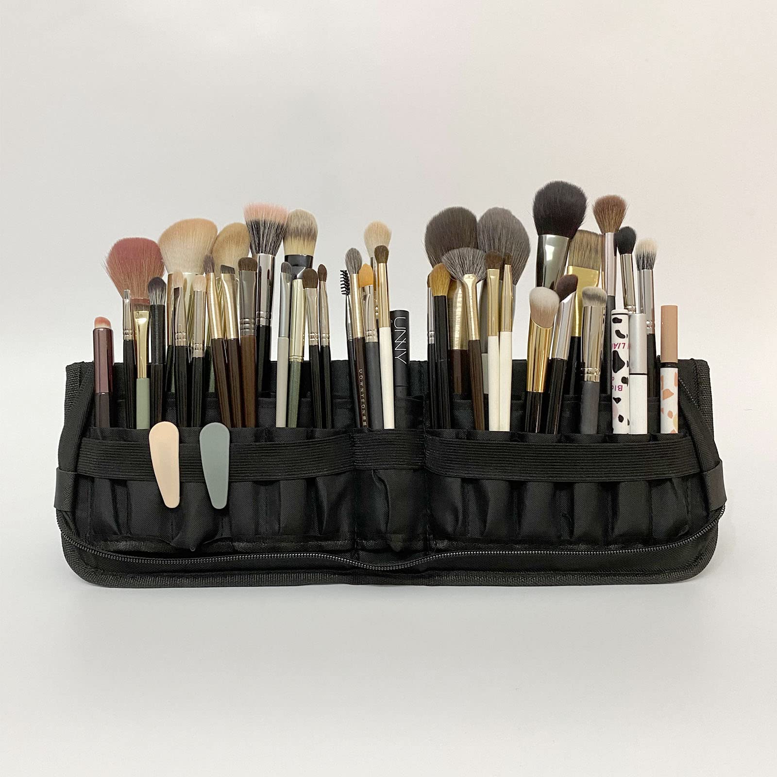 【特価在庫】メイクブラシケース大容量 40本以上収納可能 プロ用 メイクブラシ収納スタンド 化粧筆収納 18ポケット 化粧ブラシ入れポーチ 携帯便利 自立 スタンド 美容師 プロメイクアーティスト ブラック | GIGATERA