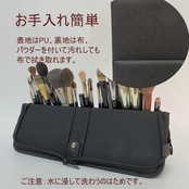 【使用上のご注意】開いたにブラシがバラバラと飛び出たり、落ちたりしますということですが、メイクブラシポーチを開く前に、ブラシを立てる方向、ポーチを立てって開いてください。