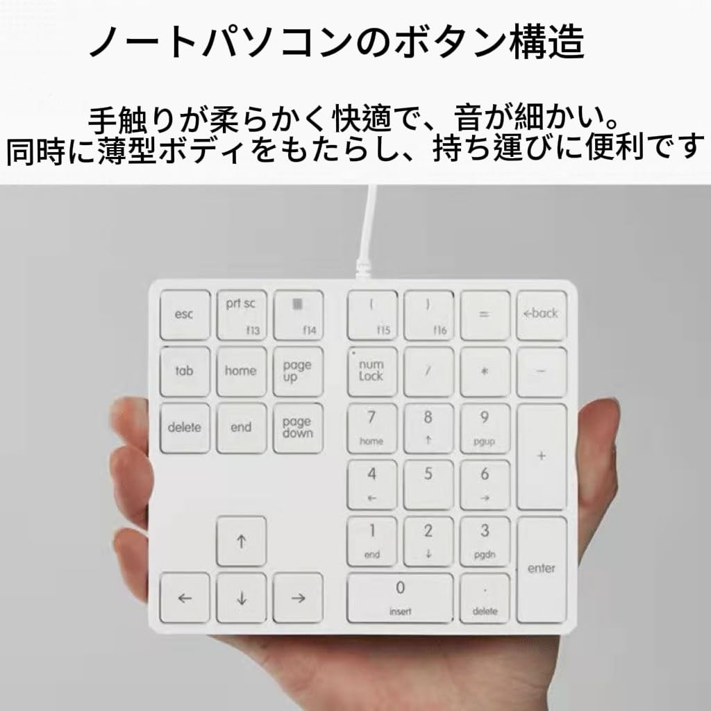 Levieny [有線/USB Type-C両対応] 薄型 34キー テンキーボード Tabキー付き テンキー usb ミニキーボード 外部 PC/Laptopなどに対応 多機能ナンバーパッド(ホワイト)