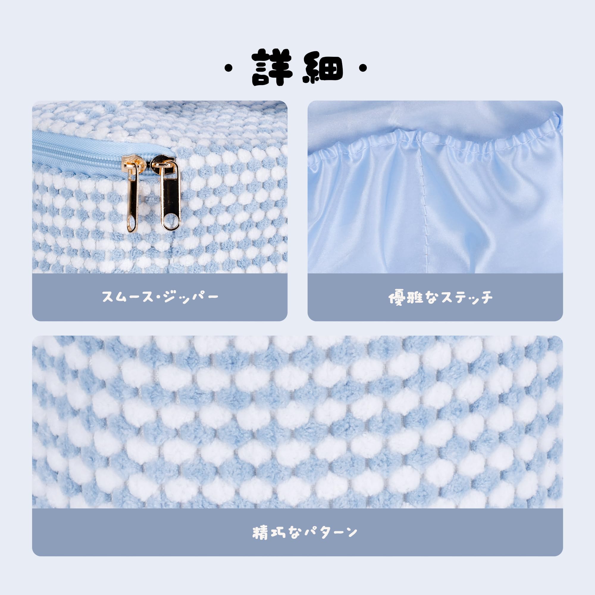 「高品質の化粧ポーチ」コスメティックケースの表地は、ソフトで肌触りの良い上質な生地を使用。内側はシルクのような滑らかな手触りで、洗練された雰囲気と高級感を醸し出しています。2色展開で、どこにでも気軽に置くことができます。