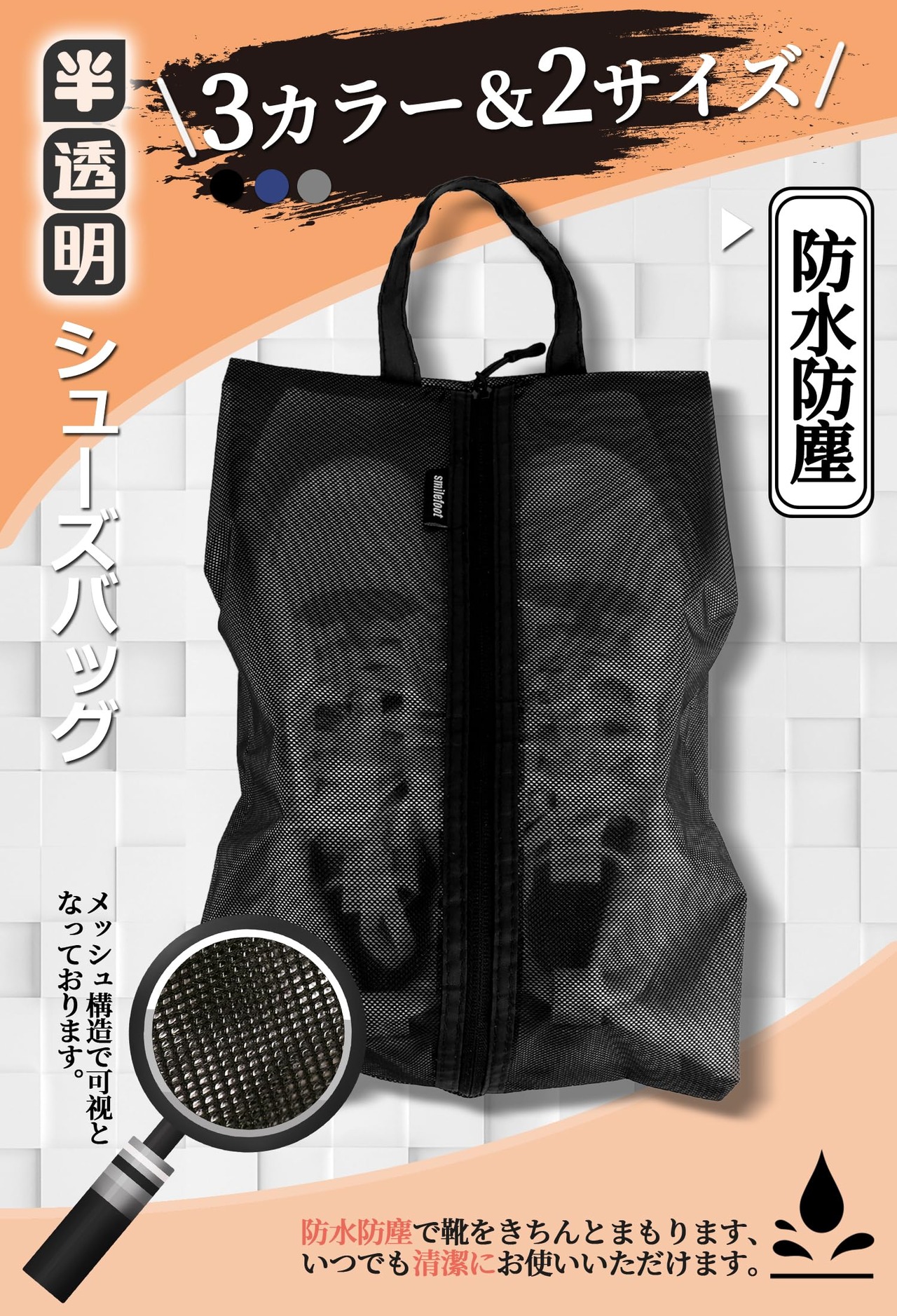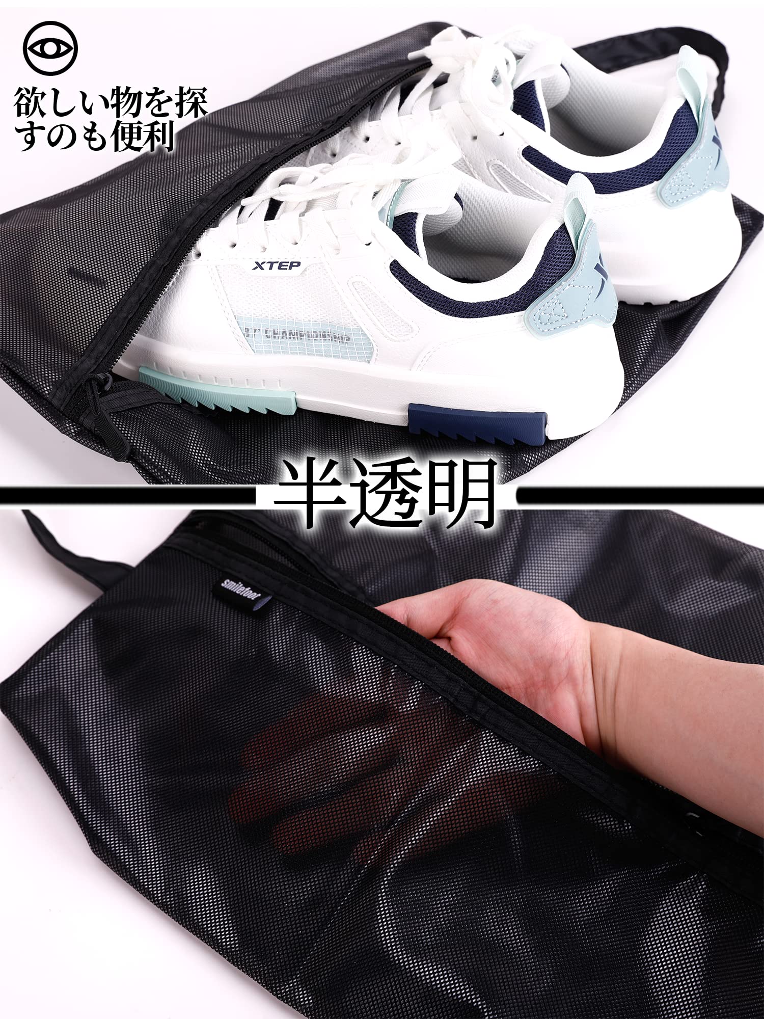 [Fluckey] smilefoot シューズケース 防水防塵 通気 破れにくい シューズバッグ 軽量 携帯便利 スポーツ アウトドア 革靴用 トラベル 卓球 バスケット 男女兼用 家庭用 部活用 学生用 (ネイビー)