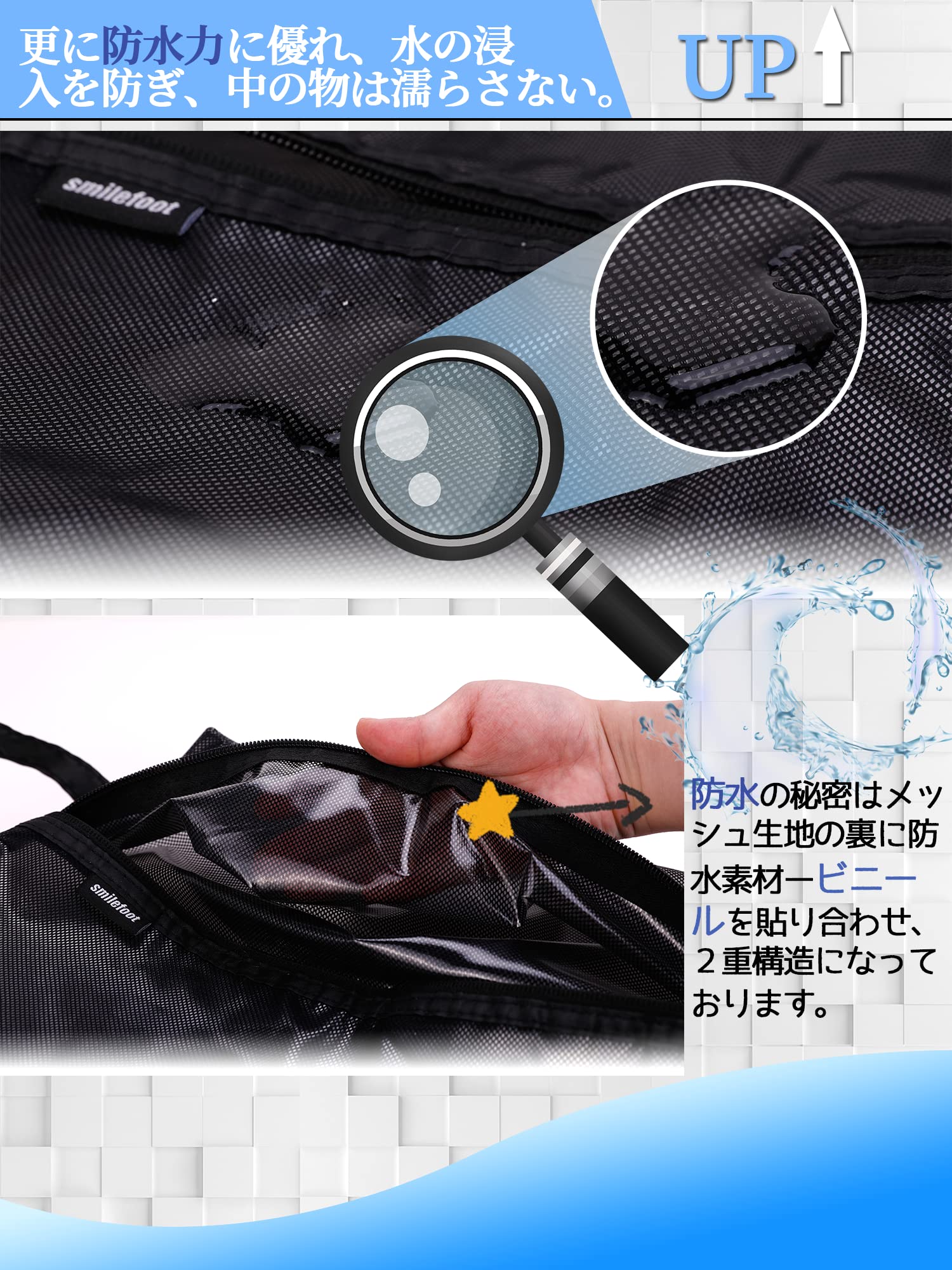 【防水防汚】シューズバッグの本体はポリエステルで作られており、汚れに強く、防水機能も優れております。防水防汚で、水洗い可能です。いつでも清潔にお使いいただけます。