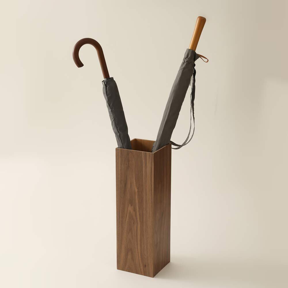 木製 傘立て 着脱式水受け皿付き 玄関収納 長傘/野球/ゴルフクラブ、 アンブレラスタンド スクエア 【1 正規品】 可能 ベージュ・ダークブラウン (ベージュ)