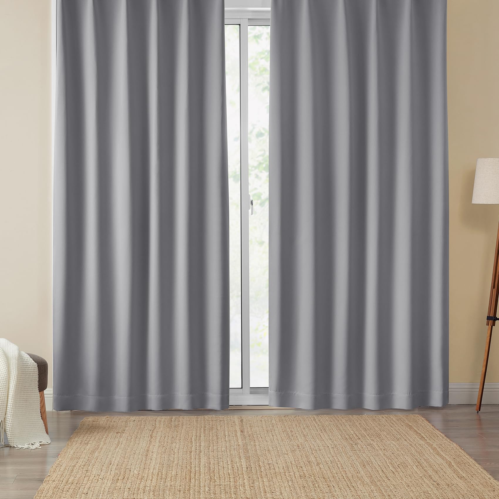 Hansleep カーテン 1級遮光 2枚組 断熱 防寒 防音 省エネ 厚手 無地 おしゃれ 洗える 寝室 リビング用 (ライトグレー, 幅100cm×丈178cm)