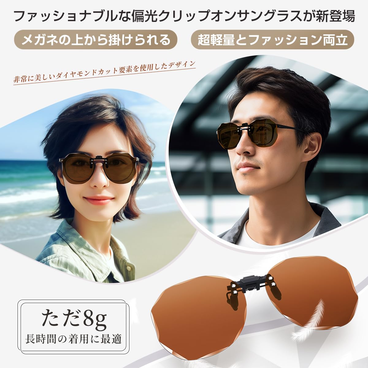 【クリップサングラス】近視眼鏡に簡単に装着でき、快適にフィットします。クリップオンデザインは、あなたの近視眼鏡に簡単に取り付けることができ、安定した装着感を提供します。