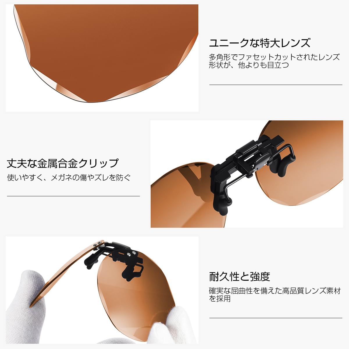 [TINHAO] 偏光 クリップオン サングラス 屋外の活動用 ダイヤモンド面取りデザイン UV400保護機能付き 跳ね上げ式 簡単装着 釣り ゴルフ 自転車 ランニング ドライブ 野球 男女兼用