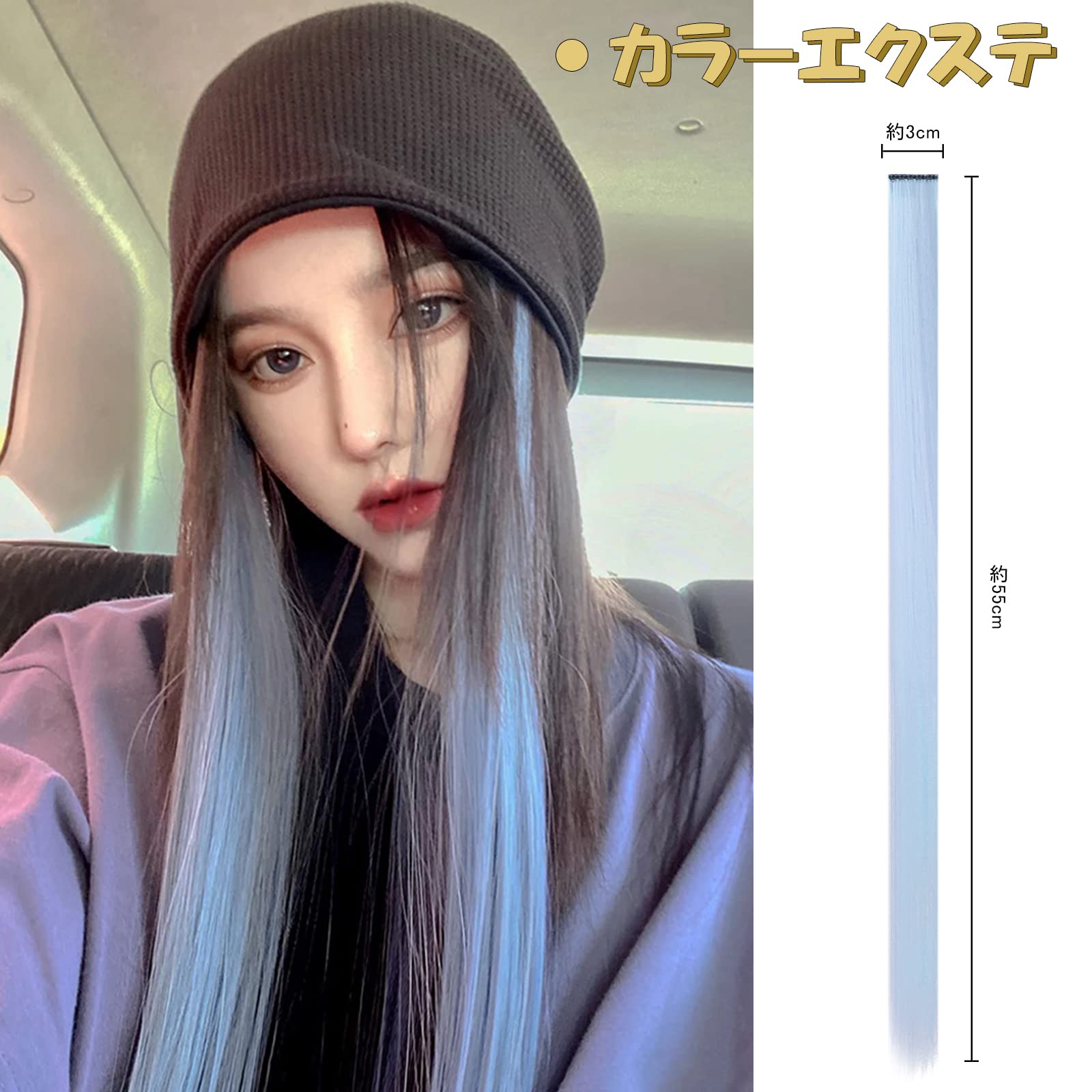 FESHFEN エクステ ワンタッチ エクステンション カラーエクステ つけ毛 ポイントウィッグ ロング クリップ付け 6本セット 単色(空色)