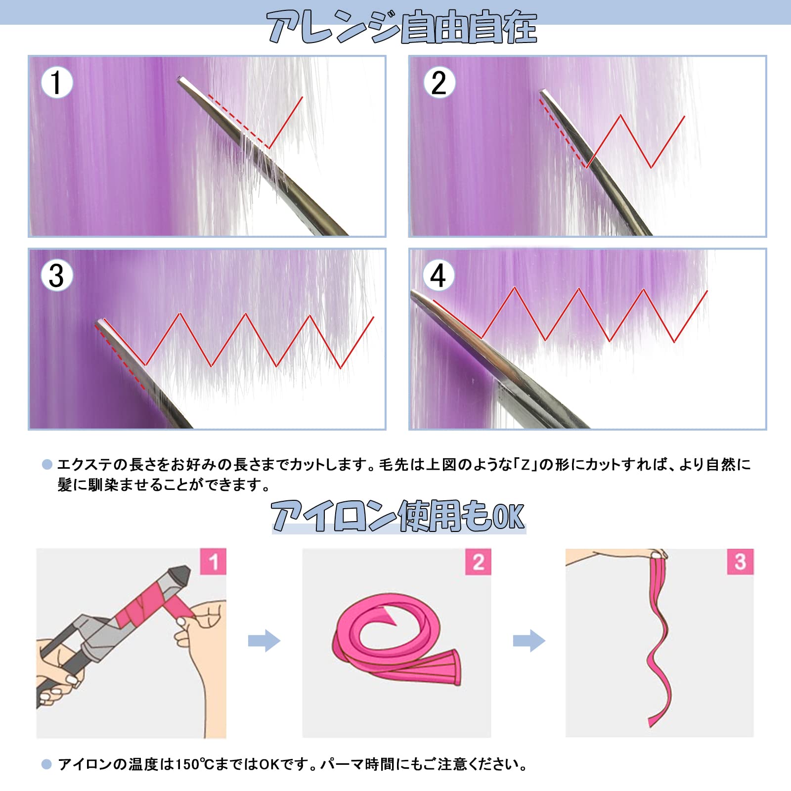 ?【カラー豊富】全17色の多彩なカラー。同色6本セットと2色10本セットの2つのオプションがあります。ハロウィン・クリスマス・パーティー・イベント等のコスプレ用に使えるエクステ。