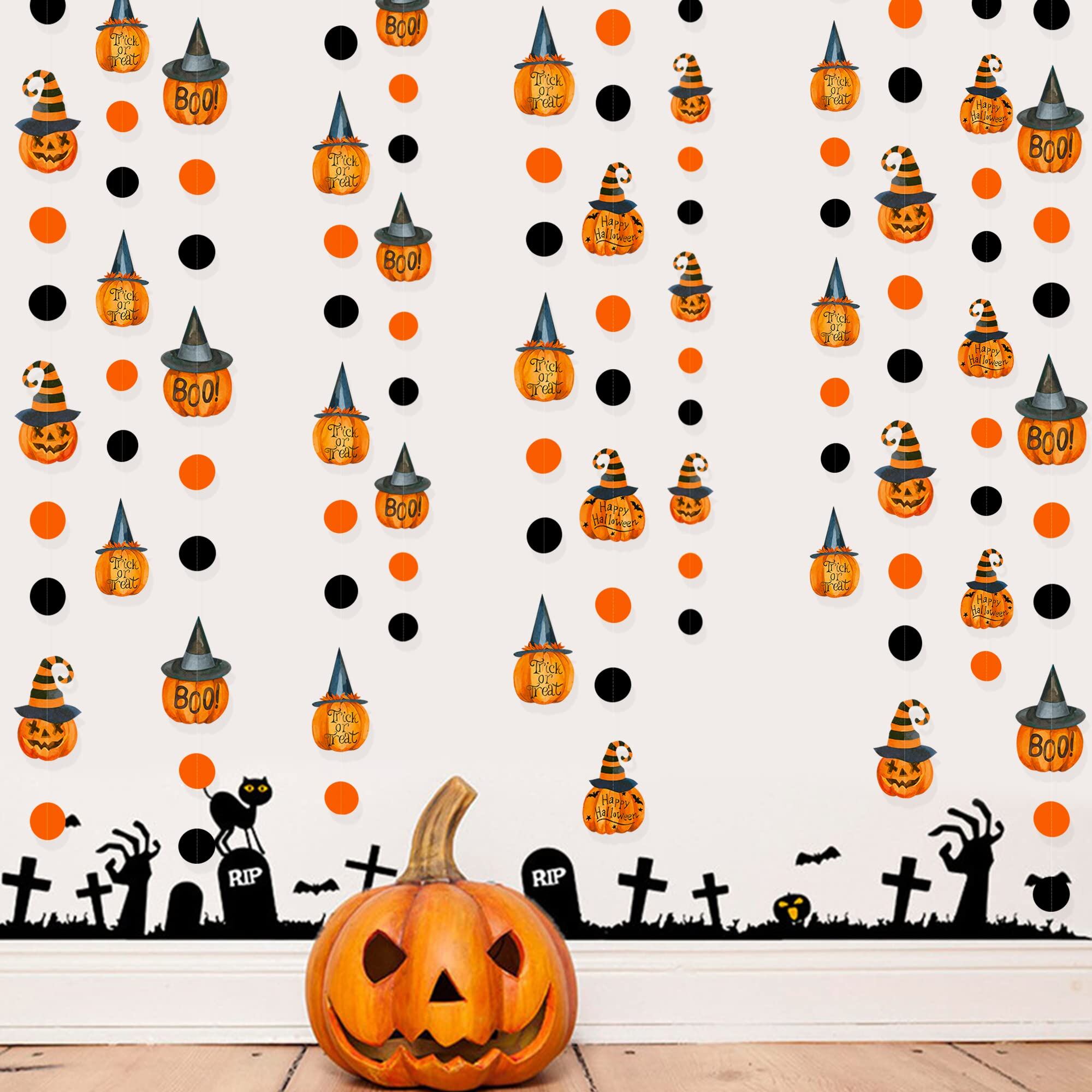 【新着】PinkBlume ハロウィンのかぼちゃの サークル ドット ガーランド パーティーの装飾 約12m長 オレンジ 黒 ハッピーハロウィン トリックオアトリート ブーサイン 魔女帽子 パンプキン ブラックオレンジサークルドットストリーマー付き 秋 ハロウィン 誕生日 パーティー 吊り飾りデコレーション用品 | GIGATERA