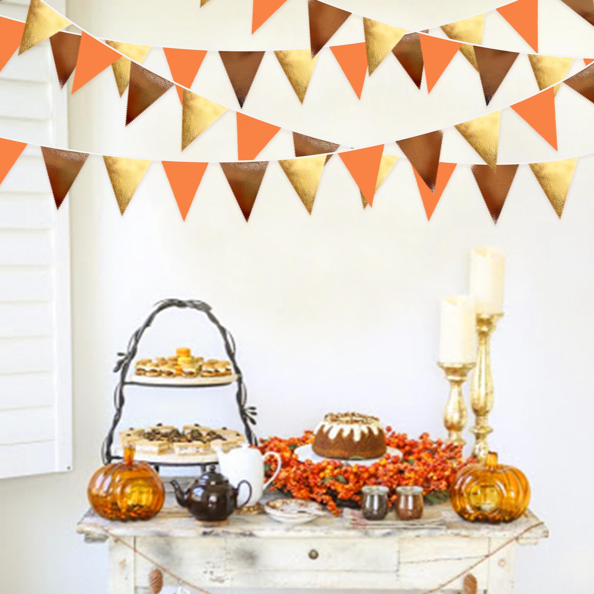 【セール】PinkBlume オレンジブラウンゴールド三角旗 布ガーランドバナーパーティー 飾り滑らかな明るい色 秋のオレンジ茶色と金色ペナント結婚式 誕生日パーティー旗 ピクニックアウトドア旗キャンプ 飾り感謝祭の収穫のテーマ ハロウィンの飾り付け バースデー デコレーション 子供部屋の装飾 | GIGATERA