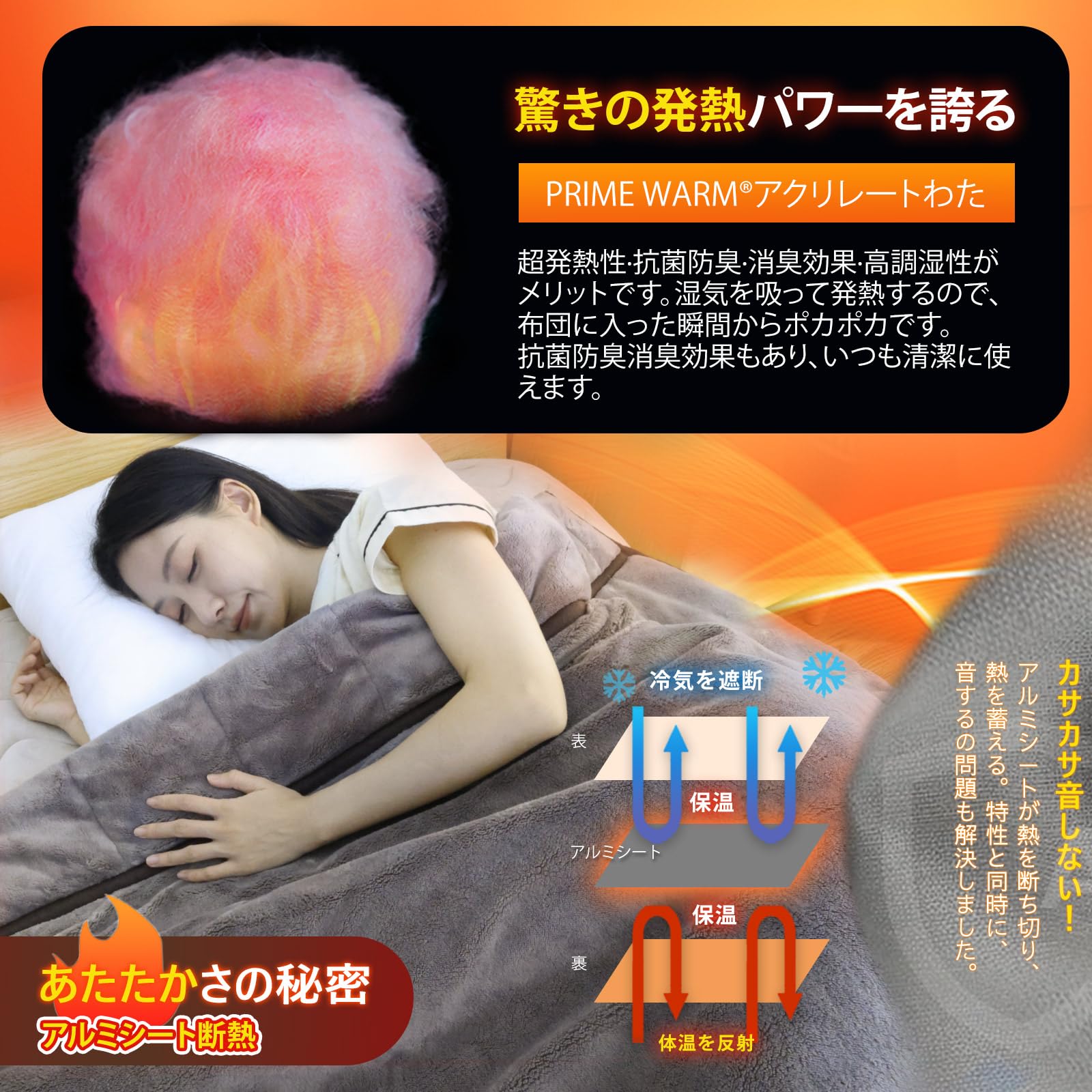 【真冬に絶対】電気代が上昇する今、暖かさ抜群の毛布は冬の快適な必需品です。のこの毛布布団は、アルミシートとエアロゲルシートを使い二重の断熱性に加え、蓄熱綿と吸湿発熱綿を組み合わせた二重の保温性を持っています。また、中綿には日本の有名な帝人の抗菌防臭繊維が含まれ、さらに表面生地には光触媒加工を施したフランネルを使用しており、温感フランネルを使用し、乾燥肌を防ぎながら、肌の修復をサポートし、静電気も抑えるよう工夫しています。