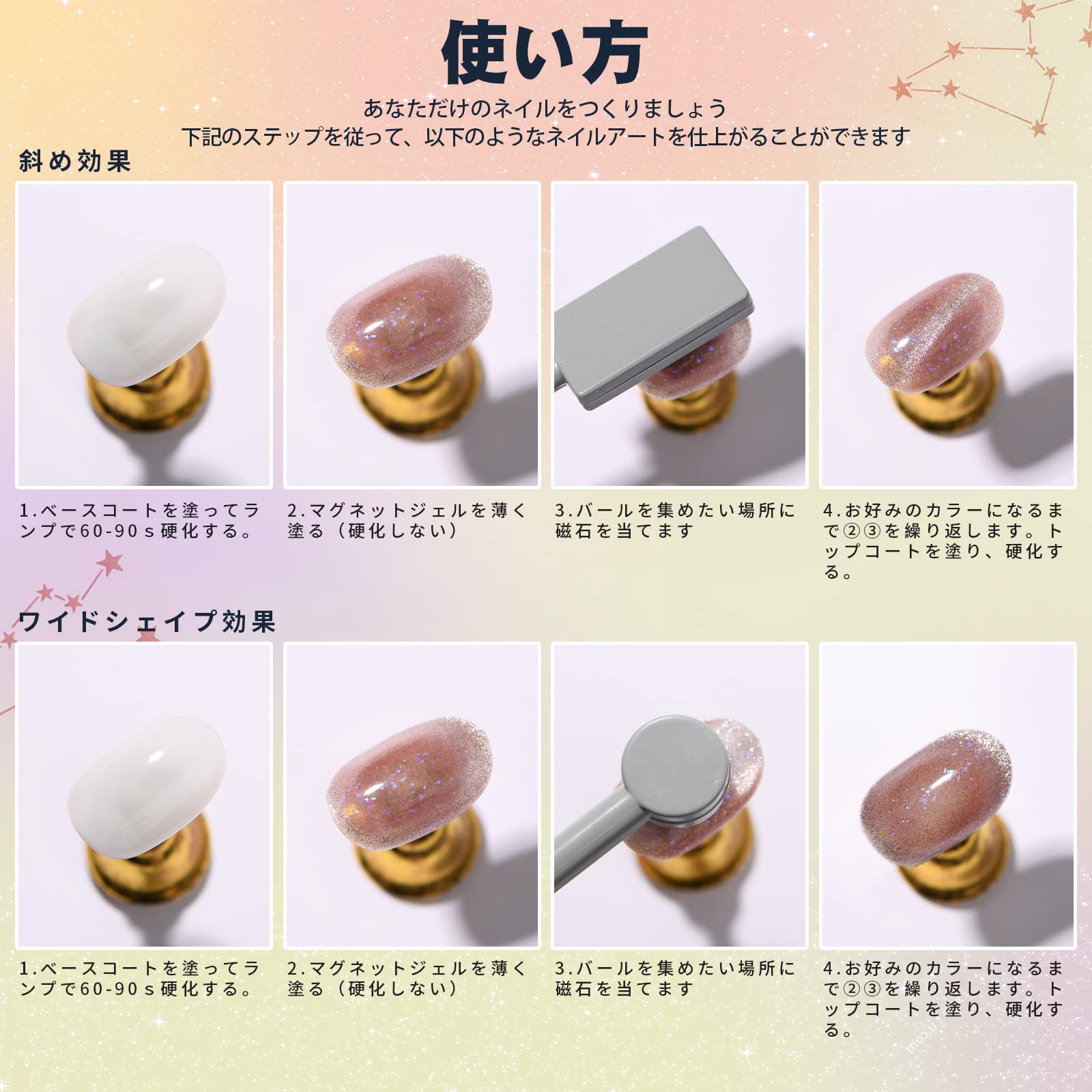 スムーズで塗り易い:本マグネットジェル6本セットは、ハケは塗りやすく、初心者でもやすくきれいになることができる。少し離して、上から素早くふわふわっと当てると、万遍なく輝きます 専門家やDIYにとって理想的な選択肢です