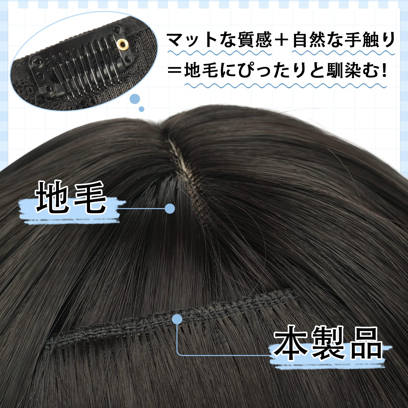 ?【違和感ない】「自然な風合い」:地毛を使用しているため、見た目も手触りも本物の毛髪のような仕上がりです。 「日常的な髪色」:ナチュラルブラック・ブラウンブラック・ダークブラウン・ライトブラウン、地毛の色に近い4色展開です。 ?地毛のような風合いと日常的な髪色で、自毛にぴったりとなじむことができます〜?