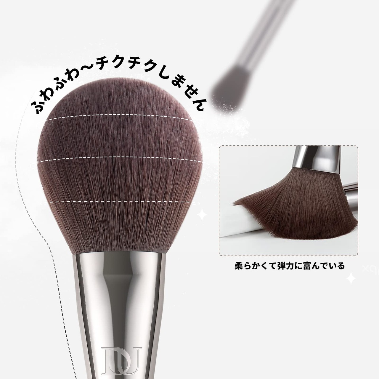 【心地よい使用感】100%タクロンと天然木を採用し、クオリティーを拘って作り上げました。天然毛とは異なり、肌に触る瞬間驚くほどのふんわり感を楽しめ、チクチクし ません。動物アレルギーの方や敏感肌の方も安心です。優れた粉含み力と快適な肌触りで、メイクの仕上がりも一段と格上げしてくれます。