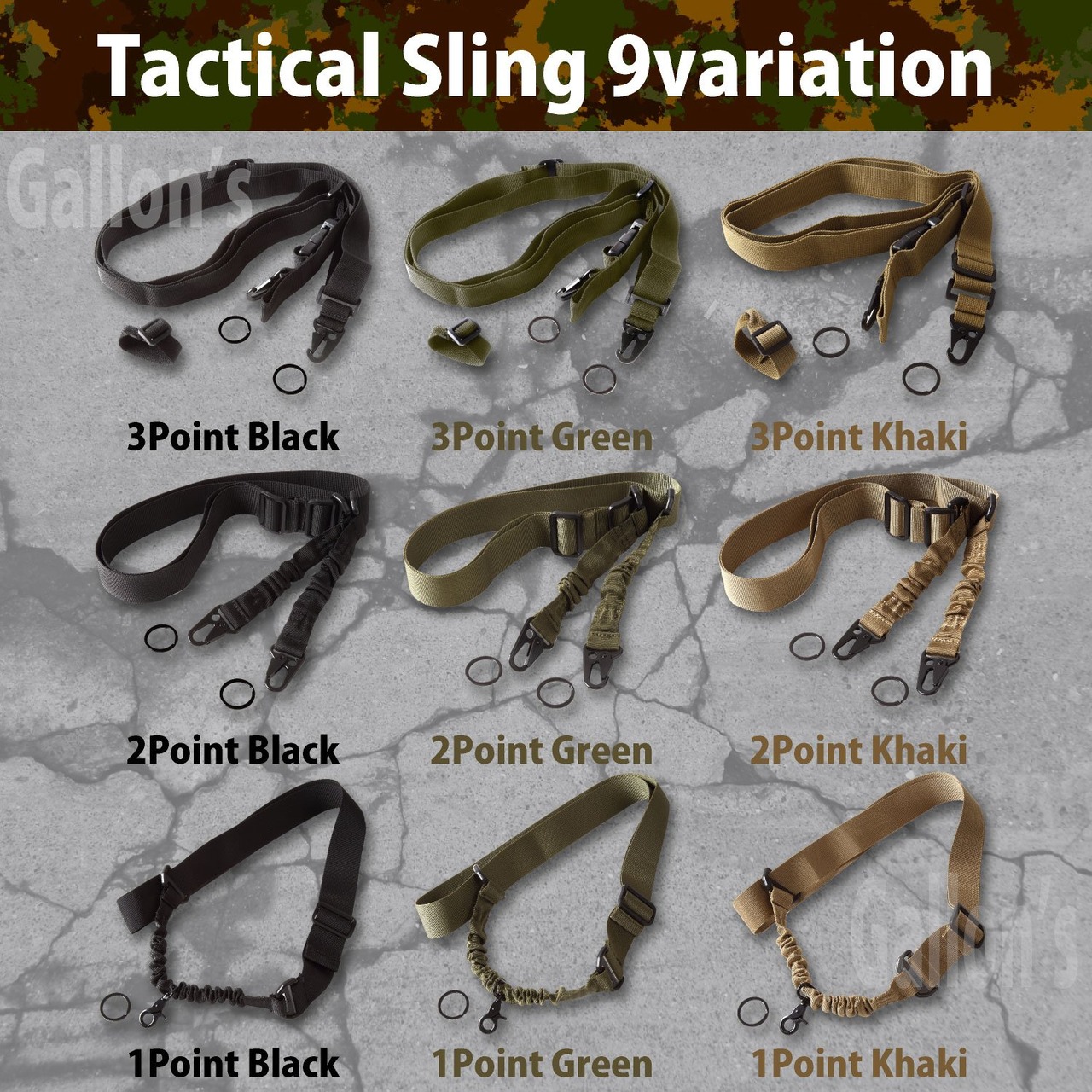 Gallon's タクティカルスリング 3点支持 2点支持 単点支持 各種 (単点, ブラック)