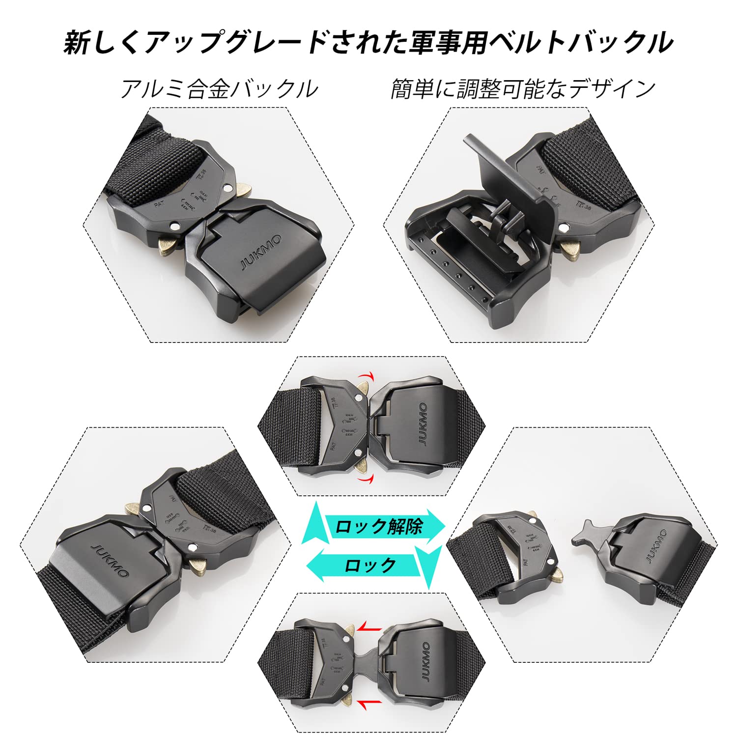 [JUKMO] 作業用ベルト メンズ タクティカルベルト ミリタリーベルト クイックリリースバックル付き