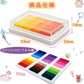 【商品仕様】サイズ(約):7.2*5.3*1.8cm 、重さ16gです。使い勝手のよいサイズ感で持ち運びもしやすい大きさです。カラフルスタンプ台*6個。