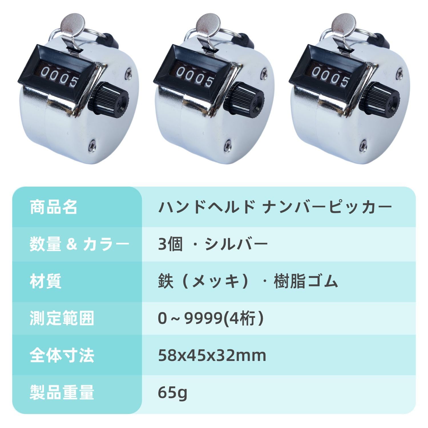3個セット 数取器 カウンター 数取り器 4桁 手持ち型 プラス数取器 手動式リセット機能付き 小型軽量 金属製 防水仕様 持ち運び便利 スポーツ・競技用途向け・入場人数カウント適用(シルバー)