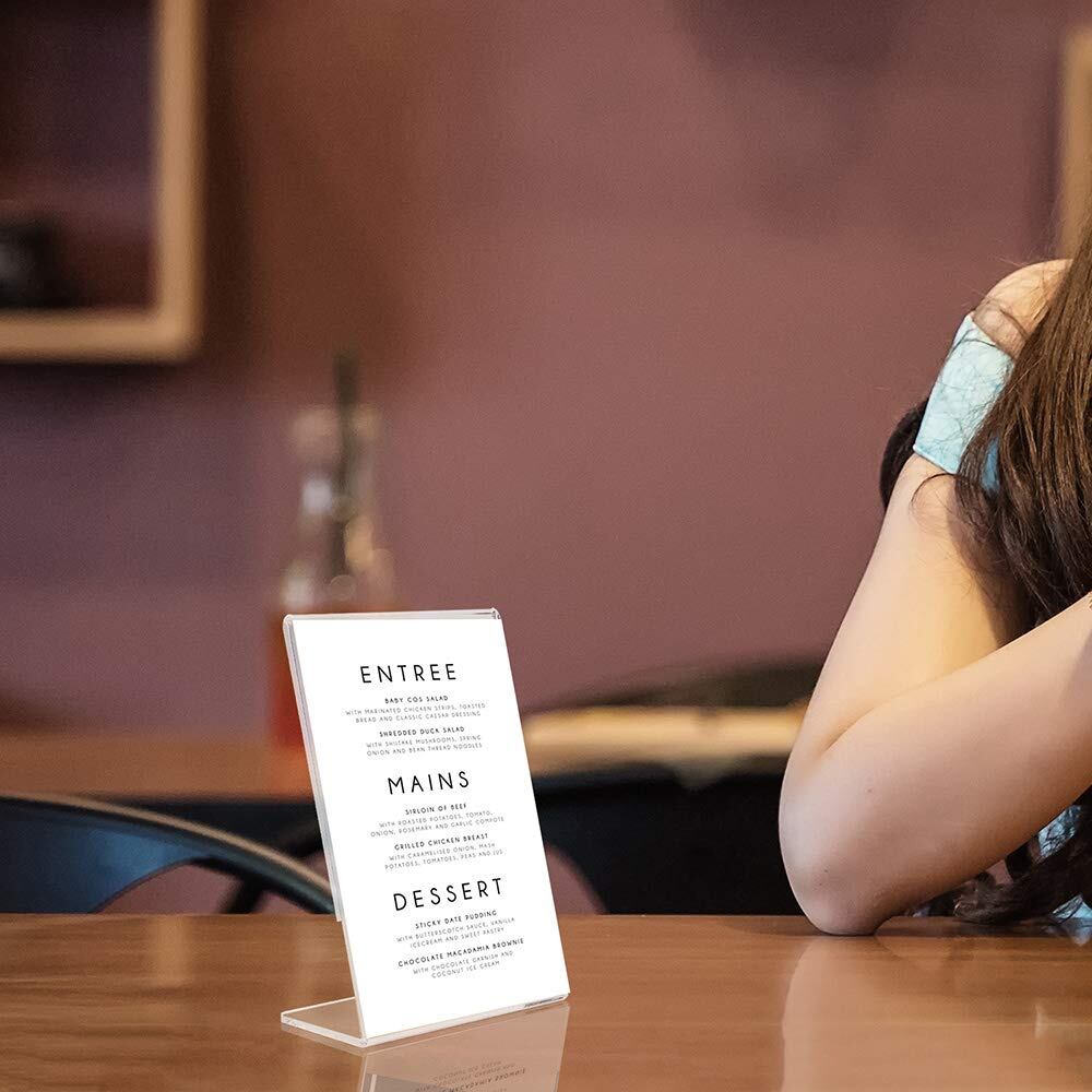NIUBEE L字アクリルフォトフレーム 写真立て 片面用 サインスタンド スタンドタイプ 飲食店のPOP広告メニュー、オフィスもの紙、家族のポスター展示 卓上用 透明 (6本セット A5判)